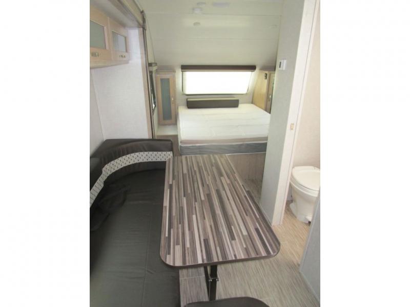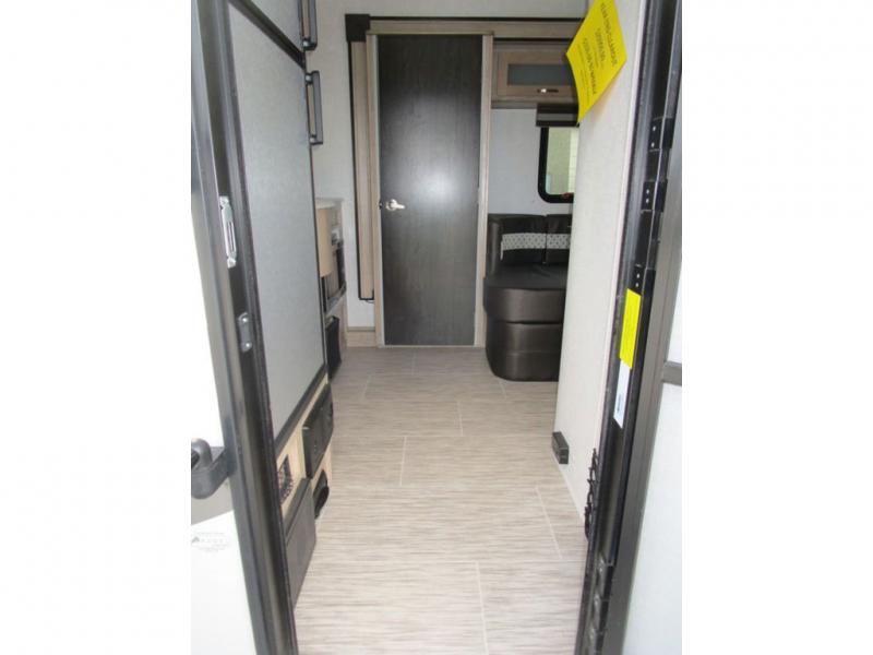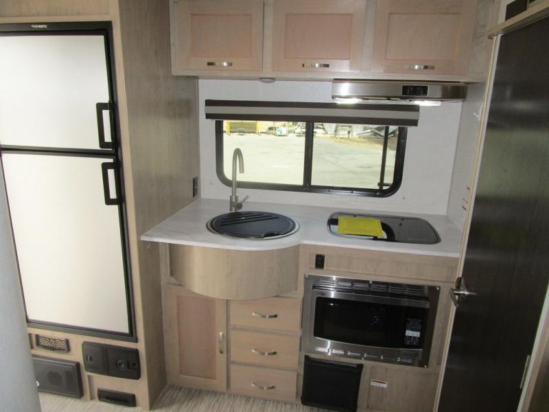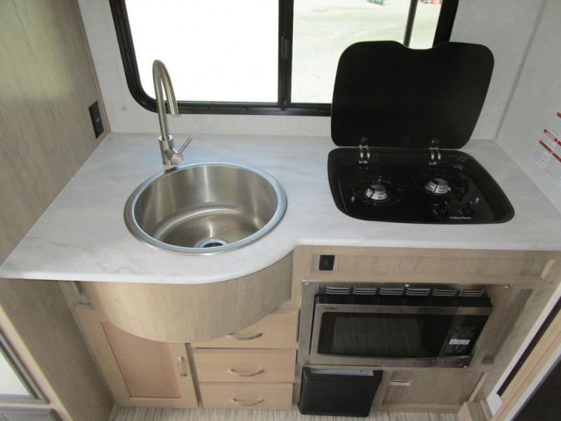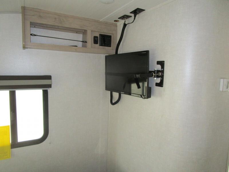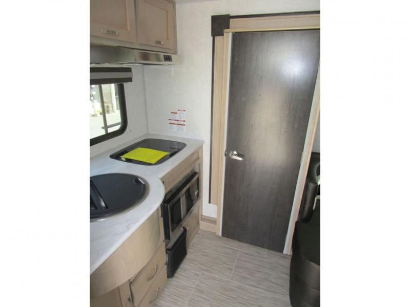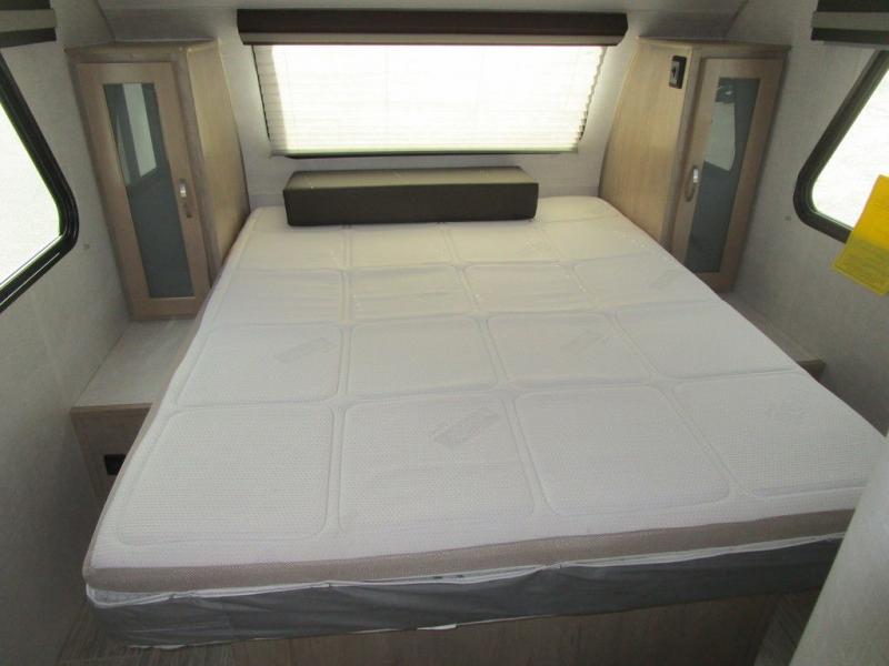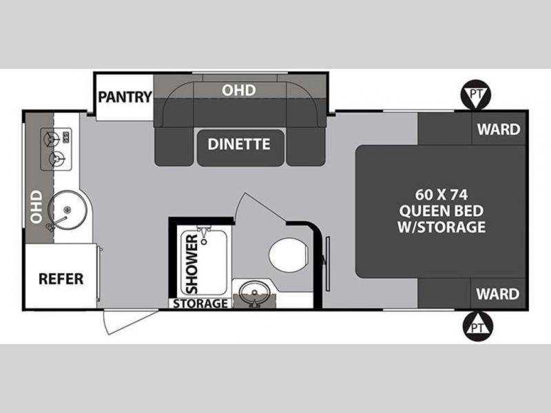 You are going to love waking up every camping weekend in this R-Pod travel trailer which features plenty of space and loads of storage for all of your things. The rear kitchen is unique and provides a large window above the cooktop and sink so that you can feel like you are cooking right outdoors even on a day when the weather isn't perfect. The U-shaped dinette and pantry within the slide out provides dining and sleeping space, dry good storage as well as more interior floor space. The front RV queen bed will allow you to wake refreshed for each new day of adventure with extra walking around space, and you will appreciate the windows on each side for cross ventilation, as well as a great view of your surroundings.