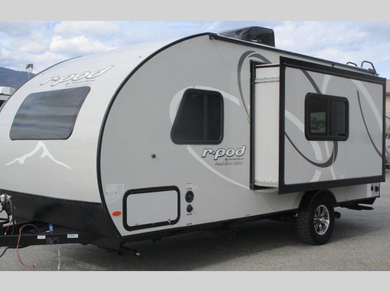 The R-Pod travel trailers by Forest River built in the Northwest include a powder coated steel frame, welded aluminum sidewalls and floor, Laminlux exterior Azdel fiberglass, and Tufflex PVC roofing depending on the model you choose. Other key features include a central vacuum, solar prep, pet friendly frame mounted utility hook and food/water bowls, Designer Carefree flooring, and residential style shaker cabinetry. Take a look, and choose the R-Pod that will fit your camping needs, wants and lifestyle!