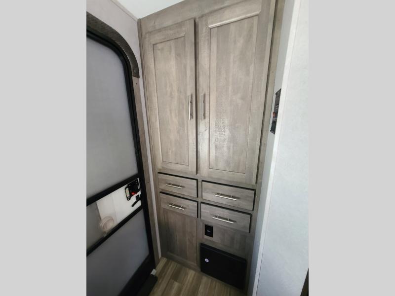 Ready to Go: Features like the power hitch jack make hitching up a breeze, and the brand new electric patio awning pops out instantly, creating the perfect outdoor lounge area for sunset cocktails or morning coffee.