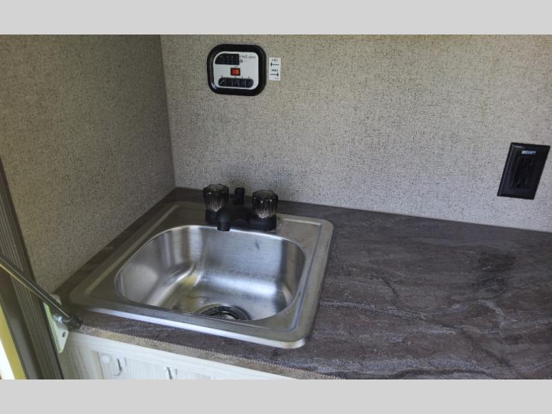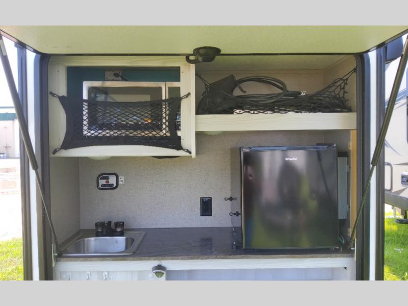 This easy-to-tow travel trailer will have you heading to the lake at the drop of a hat. Once you arrive at the campground, make a quick lunch at the outside kitchen before heading off on a hike. After you've cleaned up at the camp's facilities, you can relax on the gaucho bed that converts to comfortable sleeping space at night. You will also enjoy 8' awning that will provide shade during the day!