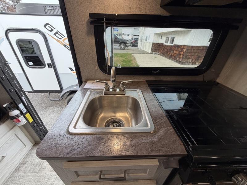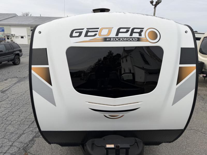 The Forest River Rockwood Geo Pro travel trailer is built to be towed by most "crossover" vehicles and smaller SUVs. Each model is built with six-sided aluminum cage construction, a torsion axle, Rubber-Ryde suspension, and includes a WiFi Ranger WiFi Booster, a power tongue jack, a Water-Pur filtration system, plus more depending on the model you choose. You will also appreciate the outdoor speaker for listening to the AM/FM stereo with Bluetooth and USB as you enjoy the outdoors. Choose your Geo Pro today!