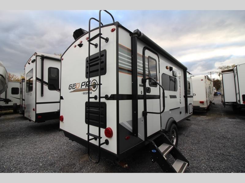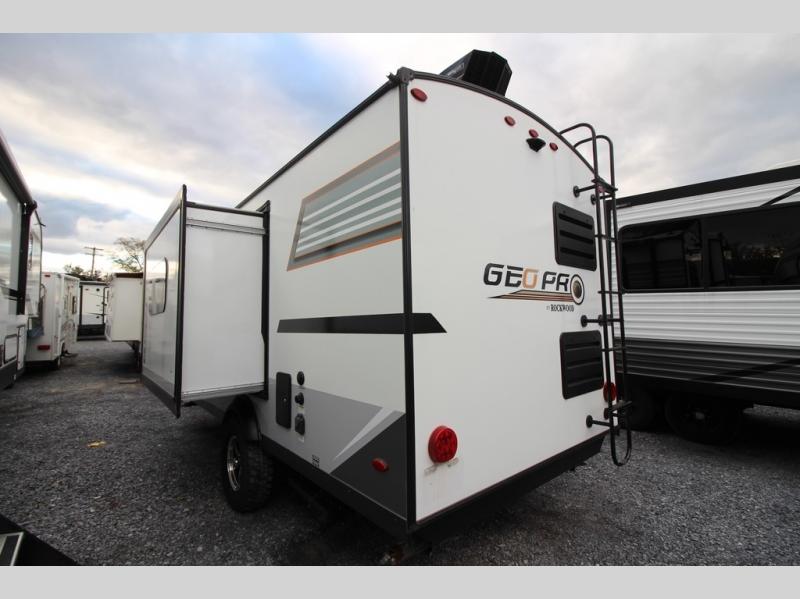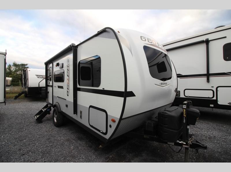 The Forest River Rockwood Geo Pro travel trailer is built to be towed by most "crossover" vehicles and smaller SUVs. Each model is built with six-sided aluminum cage construction, a torsion axle, Rubber-Ryde suspension, and includes a WiFi Ranger WiFi Booster, a power tongue jack, a Water-Pur filtration system, plus more depending on the model you choose. You will also appreciate the outdoor speaker for listening to the AM/FM stereo with Bluetooth and USB as you enjoy the outdoors. Choose your Geo Pro today!