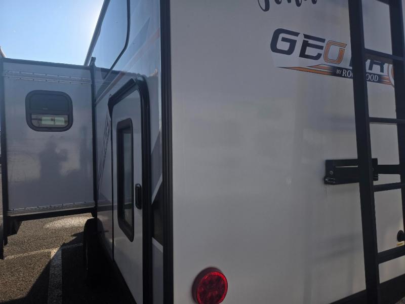 The Forest River Rockwood Geo Pro travel trailer is built to be towed by most "crossover" vehicles and smaller SUVs. Each model is built with six-sided aluminum cage construction, a torsion axle, Rubber-Ryde suspension, and includes a WiFi Ranger WiFi Booster, a power tongue jack, a Water-Pur filtration system, plus more depending on the model you choose. You will also appreciate the outdoor speaker for listening to the AM/FM stereo with Bluetooth and USB as you enjoy the outdoors. Choose your Geo Pro today!