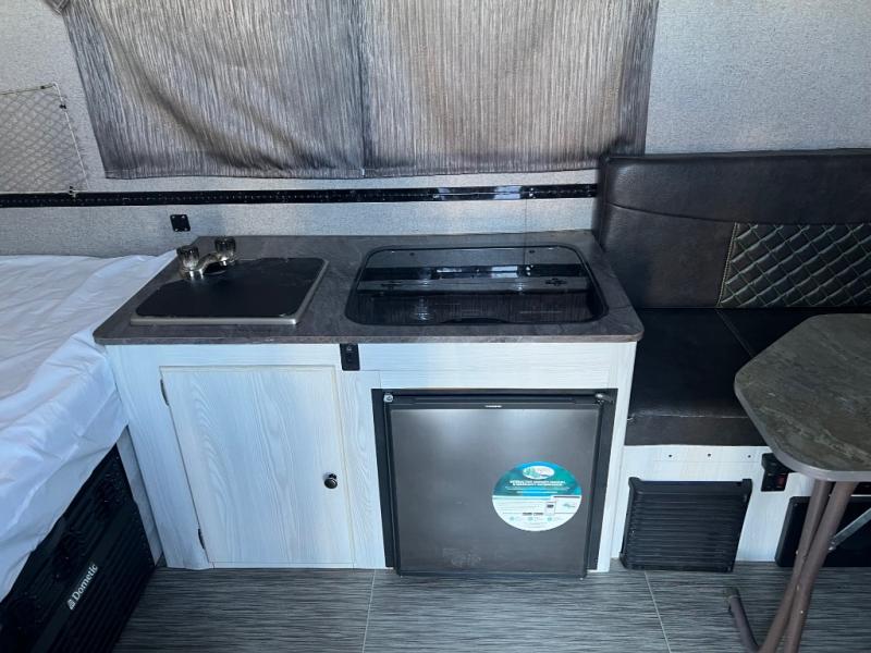 The Forest River Rockwood Hard Side Series folding pop-up campers are constructed with a one-piece vacuum-bonded fiberglass roof with a metal interior ceiling and an E-coated tubular steel frame to ensure a strong, durable unit that will last for years to come. You'll appreciate the interior floor lights and privacy curtains, and each model includes USB charging ports to keep your gadgets charged and ready to go. These models also include the Hot Water Package that includes a water filter, outside shower, a six-gallon DSI hot water heater, and a demand water pump for your convenience.