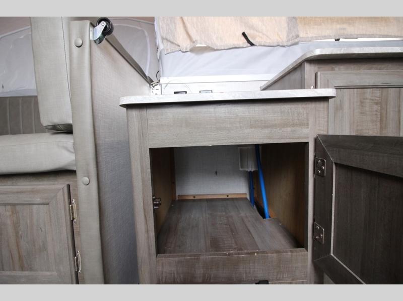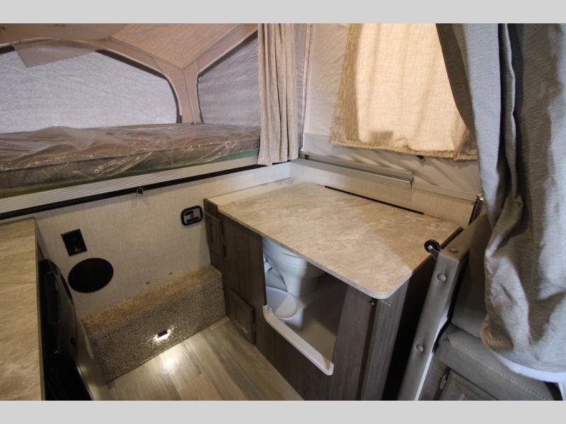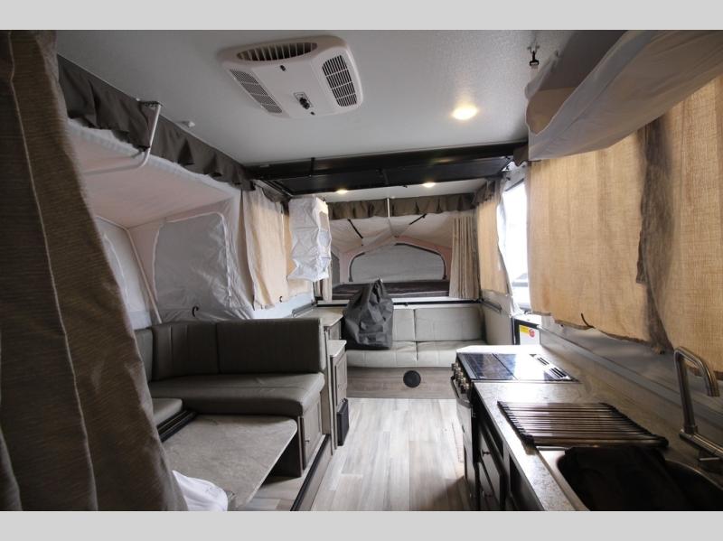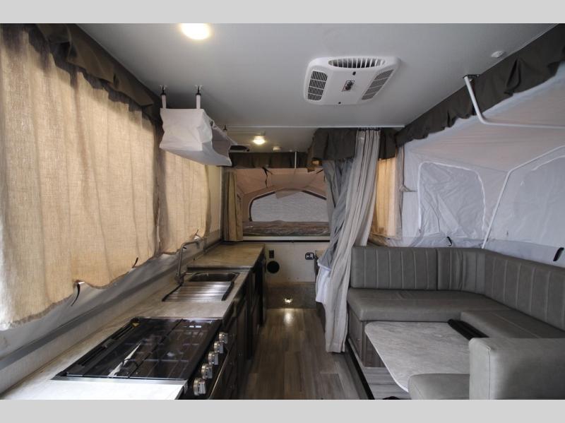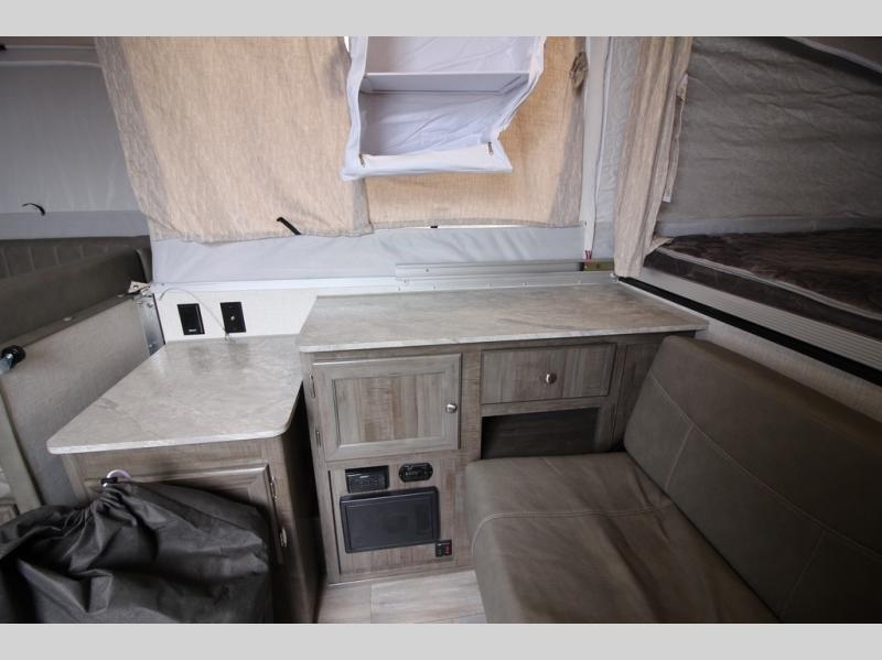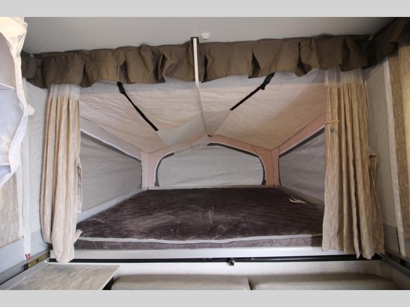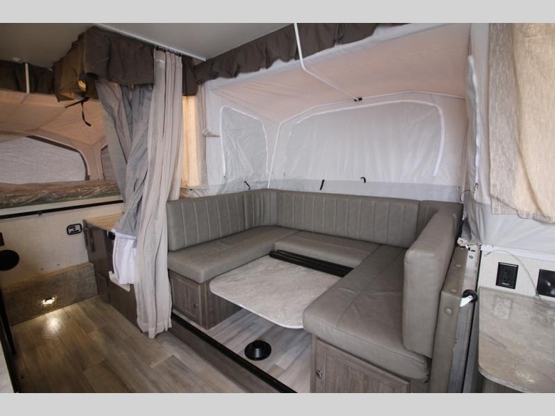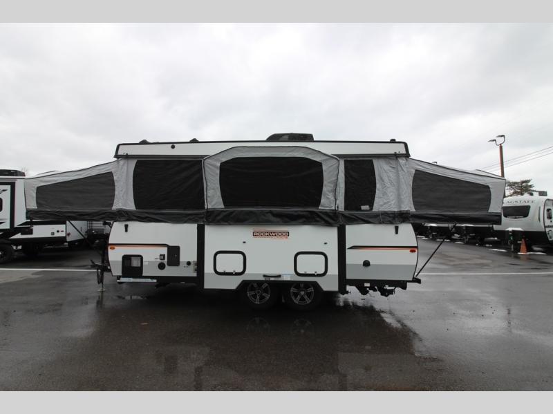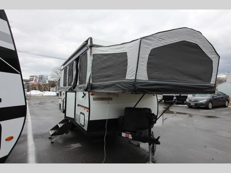 Do you desire a weekend getaway in the outdoors but still enjoy the comforts of home? Well then, this Forest River Rockwood High Wall Series is the folding pop-up camper for you! There is a U-shaped dinette for you to enjoy your meals or convert into an extra sleeping space at night. This model also features plenty of exterior storage to hold all of your camping needs, and the outdoor gas grill is sure to be a pleaser for the chef in your group. You can also choose between the front king or rear queen tent bed to enjoy your good night's rest.