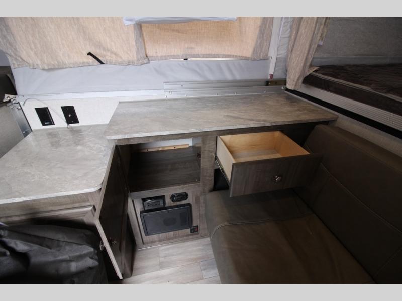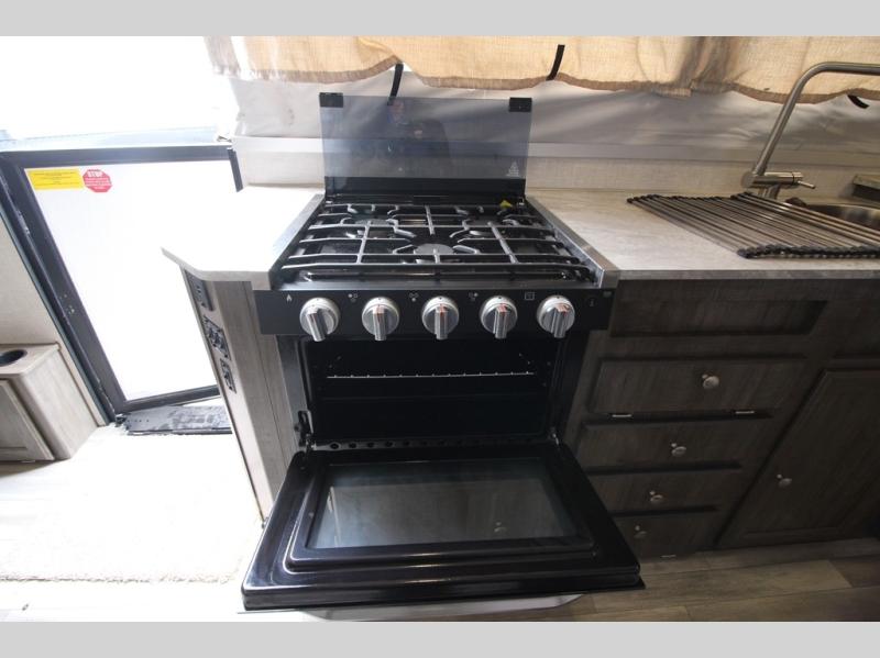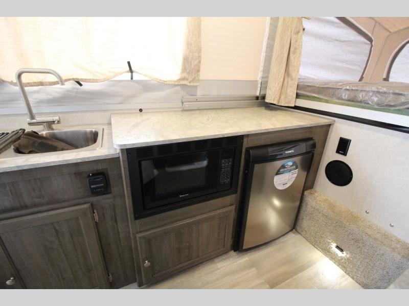 In any Forest River Rockwood High Wall, you will find a folding pop-up camper that provides luxury with a lighter towable option. Each unit features a three-burner glass top stove with oven, a microwave, residential-style cabinet doors, an AM/FM stereo with Bluetooth, MP3 player, USB, and Aux. ports. Plus, the WiFi Ranger WiFi Booster SKY 4 will allow you to have a well-connected adventure. The Rockwood High Wall has also been built to last with a fiberglass vacuum-bonded roof with a metal interior ceiling, a one-piece undercoated structure wood floor, and a five-piece sectionalized Hurculite Supreme tenting. You will also be so grateful to find other helpful features like the electric brakes, independent torsion axles, and easy-lube axles to ensure a safe trip.