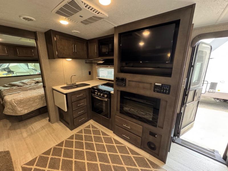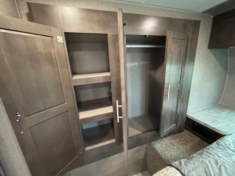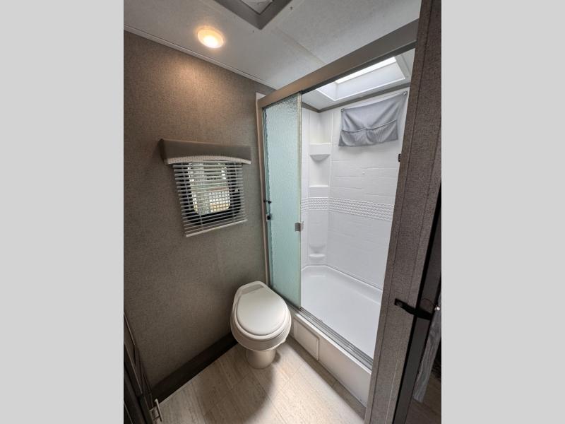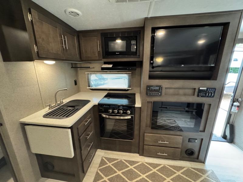 This Forest River Rockwood Mini Lite travel trailer has a front private bedroom which makes this unit the perfect couple's getaway! Whether you choose a secluded place in the woods, a campground, or a place by the beach, you are sure to love your vacation. The two slide outs provide plenty of walking space in this unit, and you can relax to the fullest with the heated theater seats that have cup holders and USB ports. You will also love the convenience and added privacy of the rear bath which has a linen closet for you to keep your linens handy. You can whip up your best meals with ease whether you choose to do so indoors or outdoors on the gas grill, and you can conveniently serve them on the kitchen countertop extension. There is even a 17' power awning with LED lights to protect you from getting a sunburn and allow you to see clearly at night.