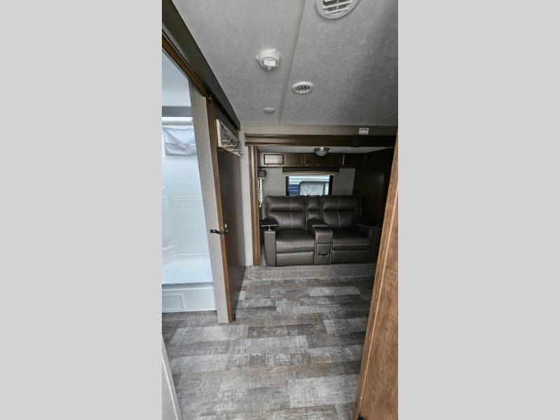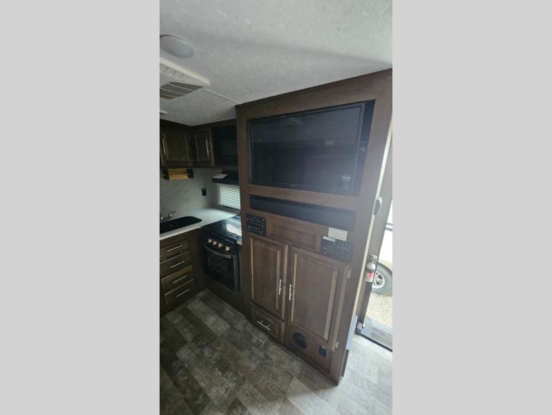 This Forest River Rockwood Mini Lite travel trailer has a front private bedroom which makes this unit the perfect couple's getaway! Whether you choose a secluded place in the woods, a campground, or a place by the beach, you are sure to love your vacation. The two slide outs provide plenty of walking space in this unit, and you can relax to the fullest with the heated theater seats that have cup holders and USB ports. You will also love the convenience and added privacy of the rear bath which has a linen closet for you to keep your linens handy. You can whip up your best meals with ease whether you choose to do so indoors or outdoors on the gas grill, and you can conveniently serve them on the kitchen countertop extension. There is even a 17' power awning with LED lights to protect you from getting a sunburn and allow you to see clearly at night.