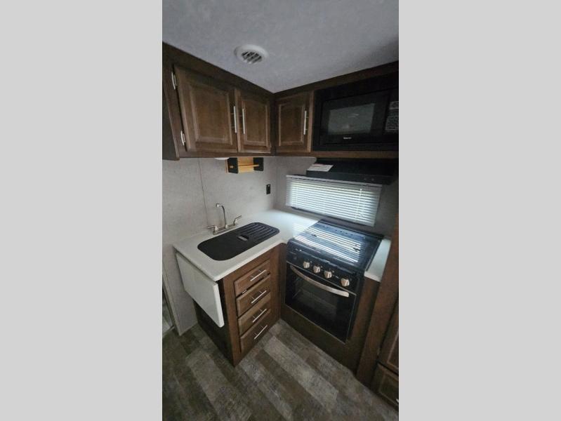 Every Forest River Rockwood takes pride in packing in as much value in as little space as they can with these Mini Lite travel trailers! They have a quality vacuum-bonded construction along with an enclosed underbelly and six-sided aluminum frames to give you a travel trailer that will last. The underbelly increases aerodynamics, the easy-lube axles and Nev-R adjust brakes ensure safe traveling, and the interior provides a residential feel with a heated mattress, a Water-Pur filtration system, and hardwood cabinets. You will also certainly enjoy having mold and mildew-resistant floor coverings when you take your adventures during the humid summer months. Take a look at these Rockwood Mini Lites and start traveling in luxury today!