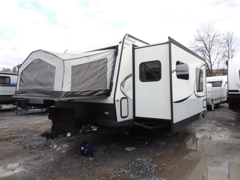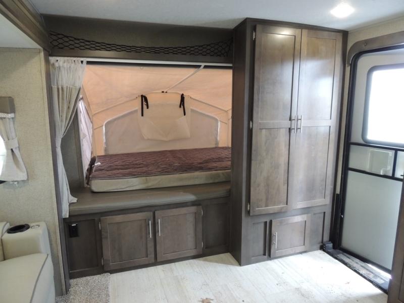 For an expandable with the perfect balance of comfort and convenience, choose the Forest River Rockwood Roo campers. Each model includes solid surface kitchen countertops, a multi zone stereo with DVD/CD/AM/FM and Bluetooth control, a double door auto gas/electric refrigerator, plus a bathroom skylight just to name a few at-home comforts. You can enjoy your time outdoors with a power awning with LED lights and the outside speakers will make your campsite the life of the party. These models are constructed with a fully aluminum frame and a radiant foil insulated underbelly, allowing you to extend your camping season with ease.