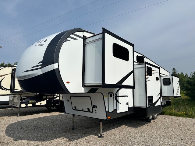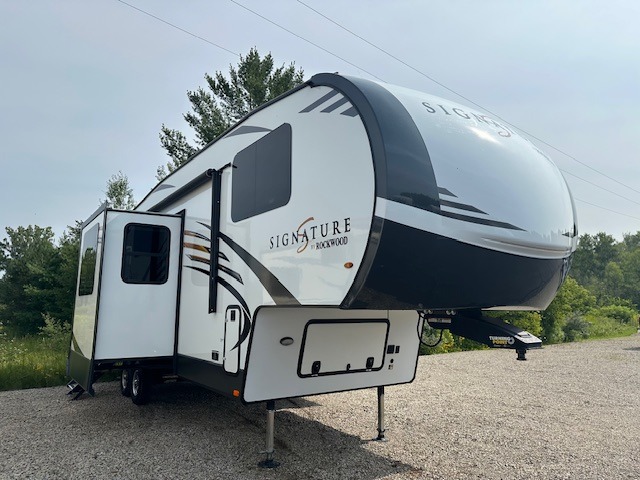 The Forest River Rockwood Signature Ultra Lite fifth wheels are anything but ordinary. You will love all the space inside each model, with each including three slides or more. Once you step inside you will find beautiful Slatewood interior, solid wood cabinet doors and drawers, plus LED lighting throughout. Outside, there is a power awning with an adjustable rain dump plus LED lights, and a seamless one piece roof. Each model also includes a Standard Package which features a high gloss front cap, an upgraded 22" gas oven, solid surface kitchen countertops, outside speakers, and so much more!