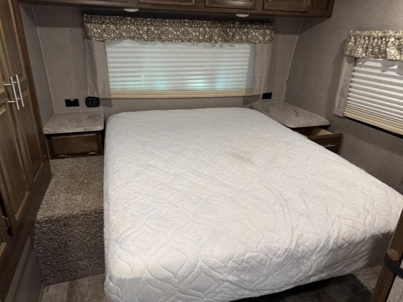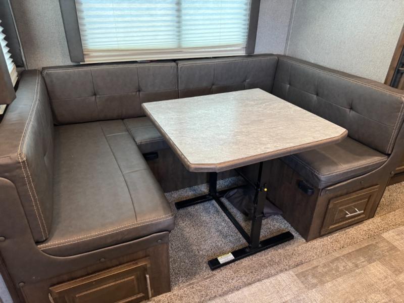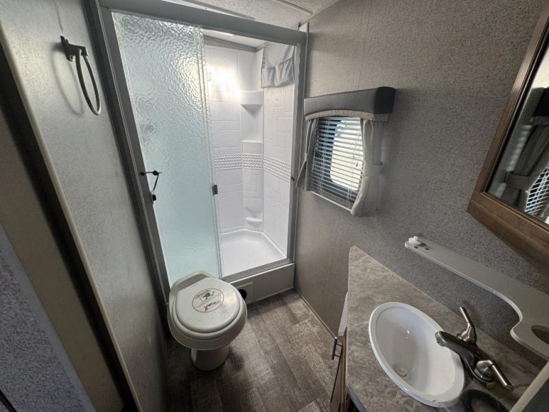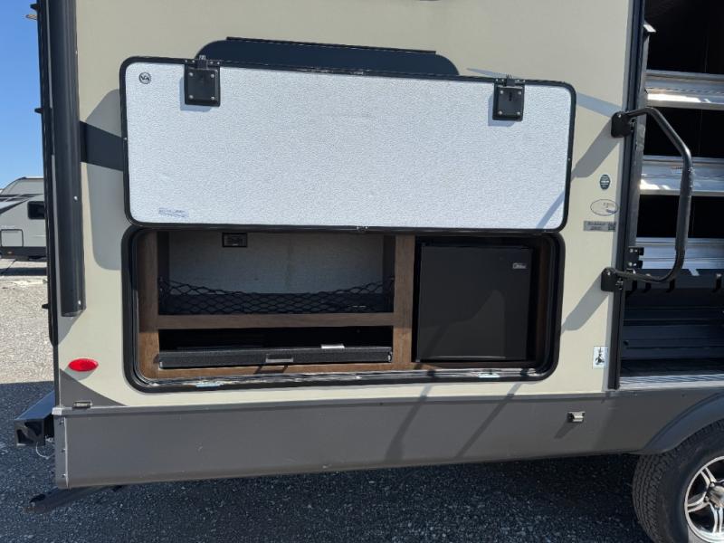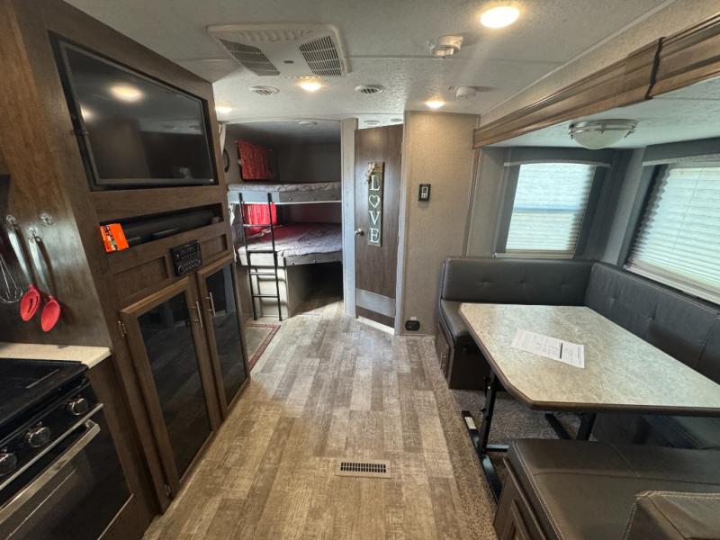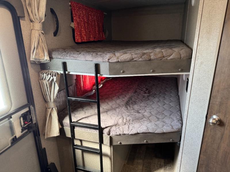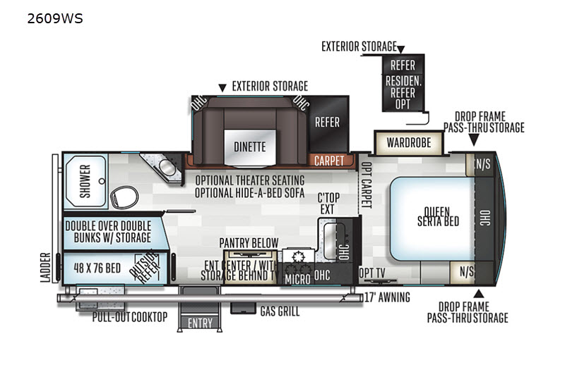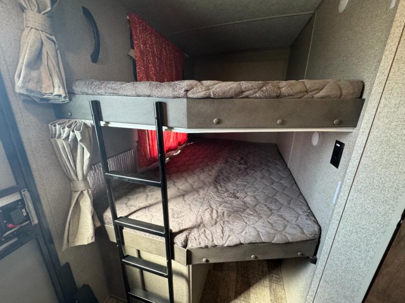 Just imagine you and your family traveling to campgrounds with your own bedding and cooking amenities without leaving your own bathroom behind. This Forest River Rockwood Ultra Lite 2609WS travel trailer offers double size bunk beds for the kiddos with a full bathroom only steps away, and your own front private bedroom with a queen Serta bed for you to enjoy a good night's rest. You even have a slide out wardrobe for more storage and extra moving around space, plus you can add the optional TV too. You all can dine outdoors under the 17' power awning with LED lights or inside at the U-shaped dinette. The cook even has the choice of making meals on the outside kitchen or inside with full amenities including a counter extension for more prep space. There are options to choose from such as a residential refrigerator, theater seating, or a hide-a-bed sofa!