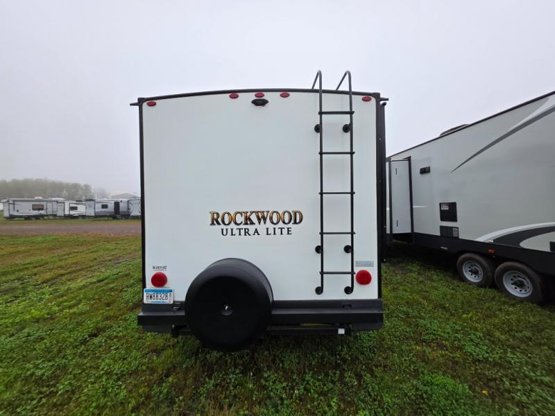 Lighten your load with any one of these Forest River Rockwood Ultra Lite travel trailers! All of these units have full-aluminum frames and laminated fiberglass sidewalls to make a sleek and sturdy unit that will last a lifetime. And with the Torsion axle and Rubber-Ryde suspension, you will enjoy a smooth ride each time you travel. To keep you cool on a warm day, you will enjoy a 13,500 BTU A/C unit, and to warm you up on a cooler day, there is a quick-recovery auto-ignition gas/electric water heater for a hot shower. Between the LED TV with a multi-directional antenna, the WiFi Ranger WiFi Booster Sky 4, and the multi-zone stereo with DVD/CD/AM/FM/MP3 player hook-up and Bluetooth control, you will find entertainment for everyone in your group.