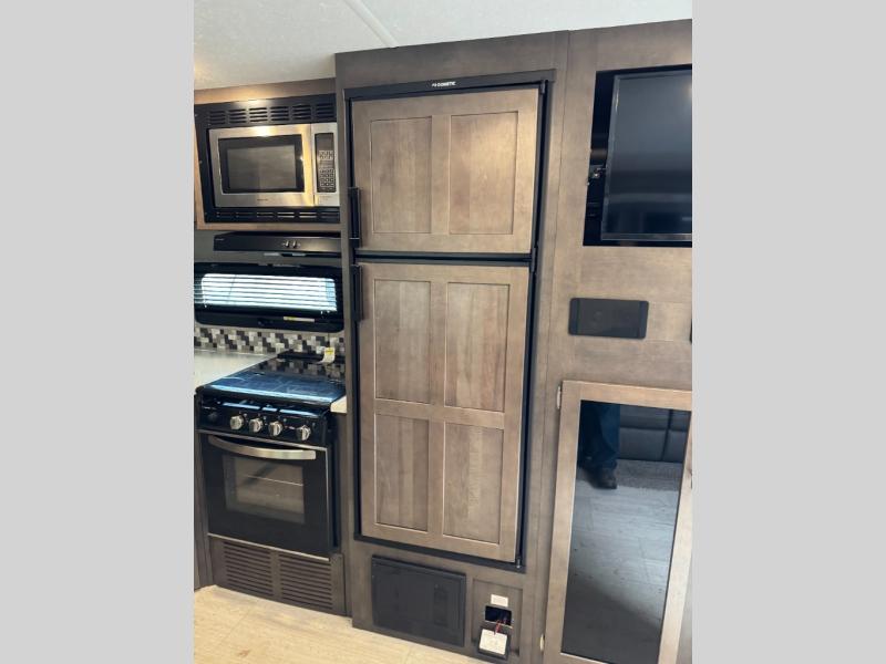 Enjoy any camping trip with this Forest River Rockwood Ultra Lite travel trailer. The kitchen area is where you can easily create meals and snacks while on the go with a pantry big enough to store your favorite goodies! Opposite of the kitchen area, you will find a slide out with a 60" hide-a-bed sofa and a U-shaped dinette. Both of these offer overhead cabinets to keep things tucked away and organized. The double-size bunks are sure to please your kids, and they will also love being right next to the rear bath, especially for those late night trips to the bathroom. There is also an outdoor kitchen so that you can enjoy the outdoors to its fullest, plus a 21' power awning with LED lights to protect you from the sun's rays!