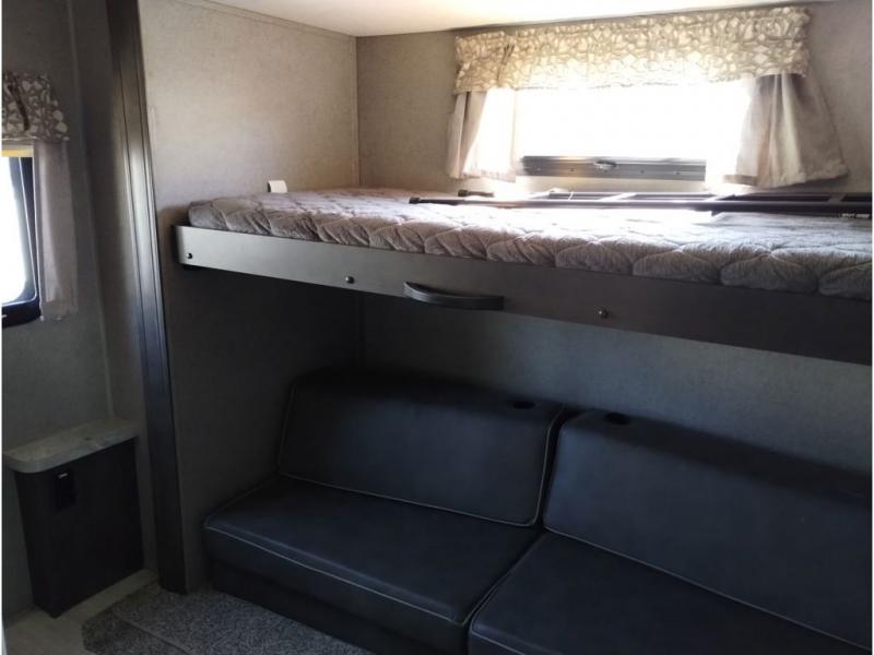 This double-entry Forest River Rockwood Ultra Lite travel trailer will have your kids wanting to go camping every weekend! The unique bunkhouse suite offers a Play-Cube sofa below a flip-up bunk and also includes the option to add a TV for their entertainment. The best part about their private room is the half bath which allows them to make easy trips during the night, and there is a linen closet to keep things tidy. There are many more features you will love such as the U-shaped dinette and the 60" hide-a-bed sofa providing comfortable seating and sleeping space when your friends join you. The full bathroom is across from the main entrance, and it includes two entry doors so that you have easy access at night from the front master suite!