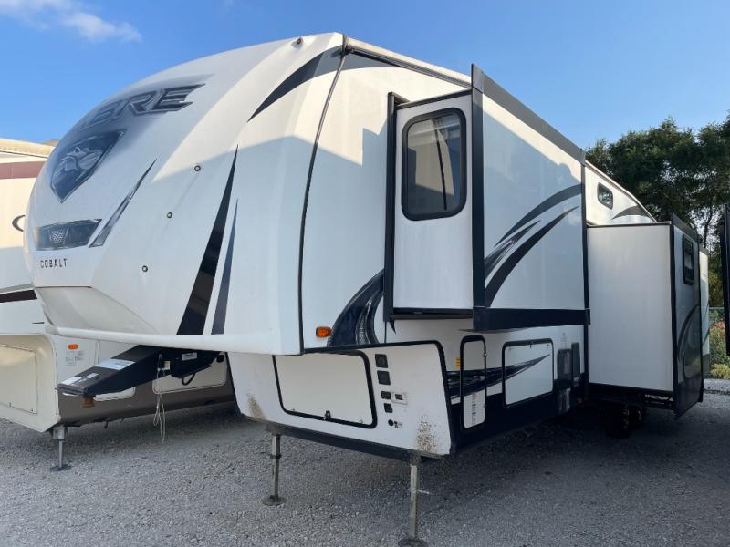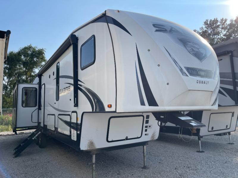 You will experience a luxurious camping trip at an affordable price with any one of these Forest River Sabre fifth wheels! These fifth wheels are durable and ready to travel anytime of the year thanks to features like the high-gloss gel-coat front cap, the maintenance-free heavy-duty PVC roof membrane, and the forced air, heated and enclosed gate valves and underbelly. The Generation III electric auto-leveling system makes setting up easy and safe. With the Sabre Cobalt package, you will enjoy exterior features like the universal docking station which includes a black tank flush and an outside shower and the MOR/Ryde quad "Step Above" entry steps for you to enter and exit the unit safely. The interior All-Inclusive package gives you plenty of entertainment and luxurious features to make you feel right at home, like the Cinemax seating, the fireplace with remote, and the double high-output USB charging ports so that you can stay connected the entire time.