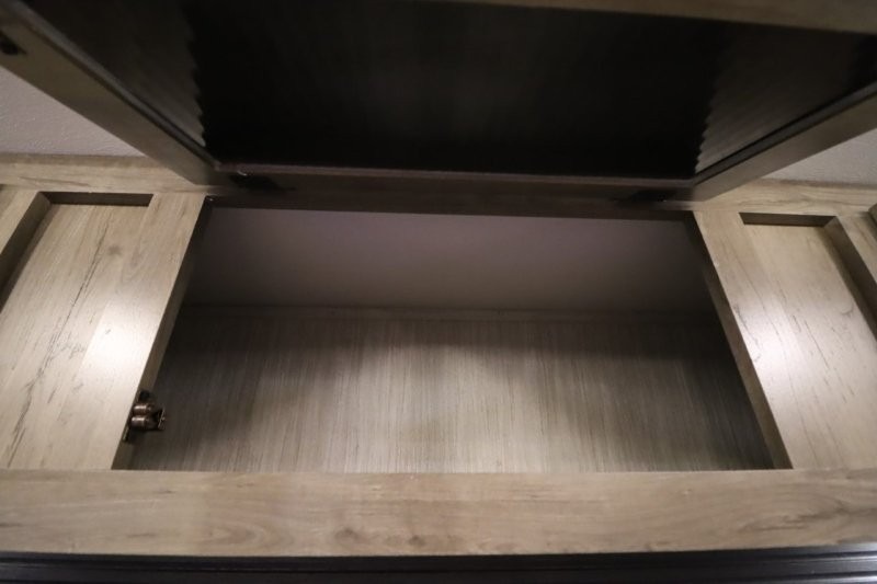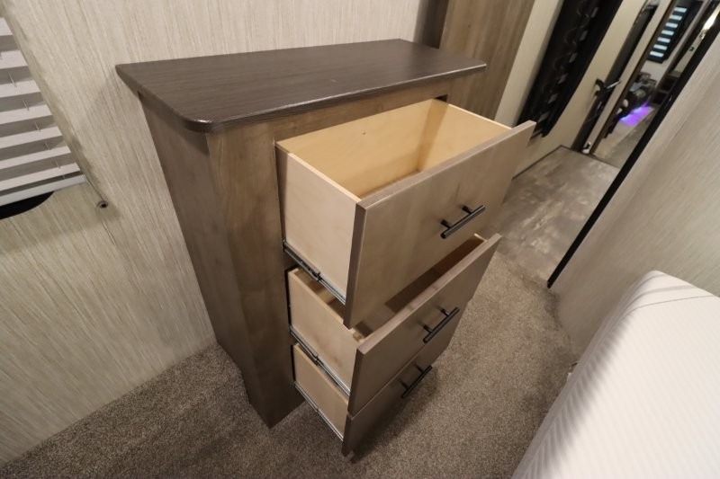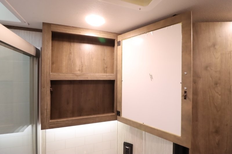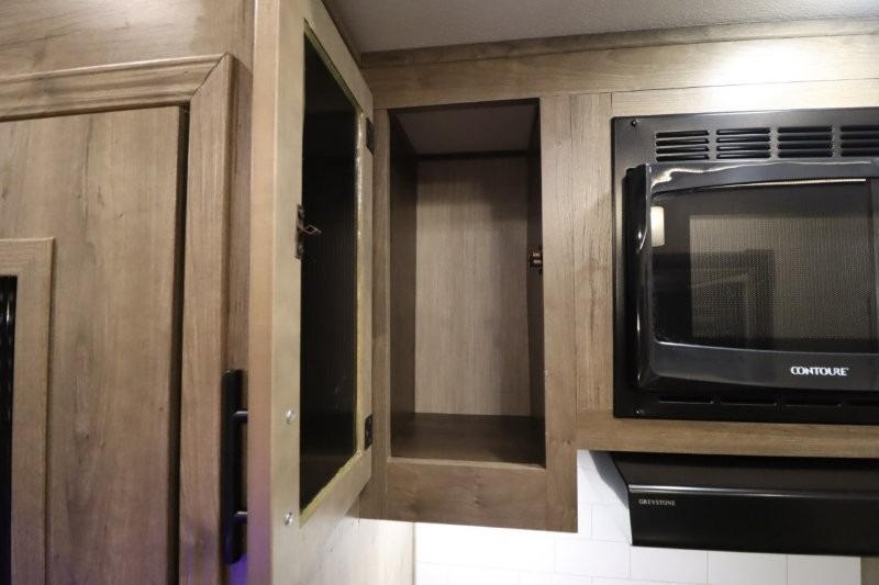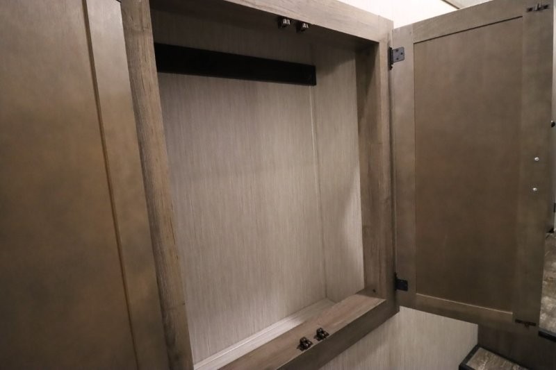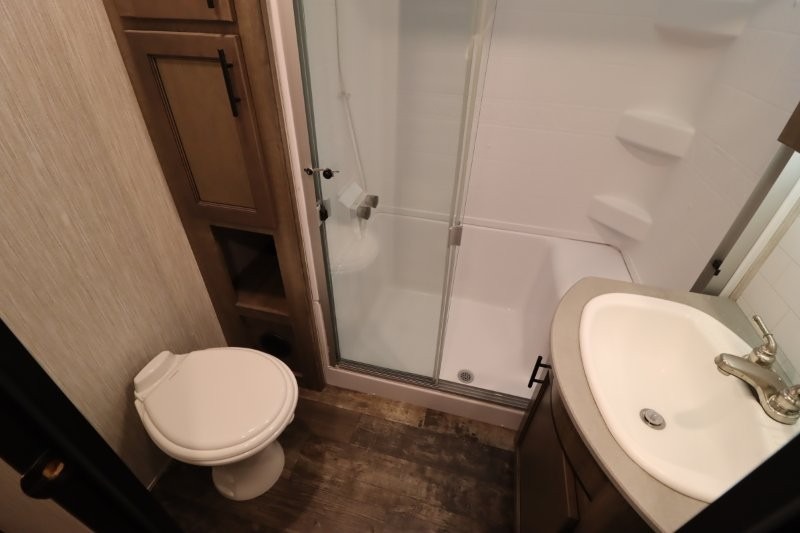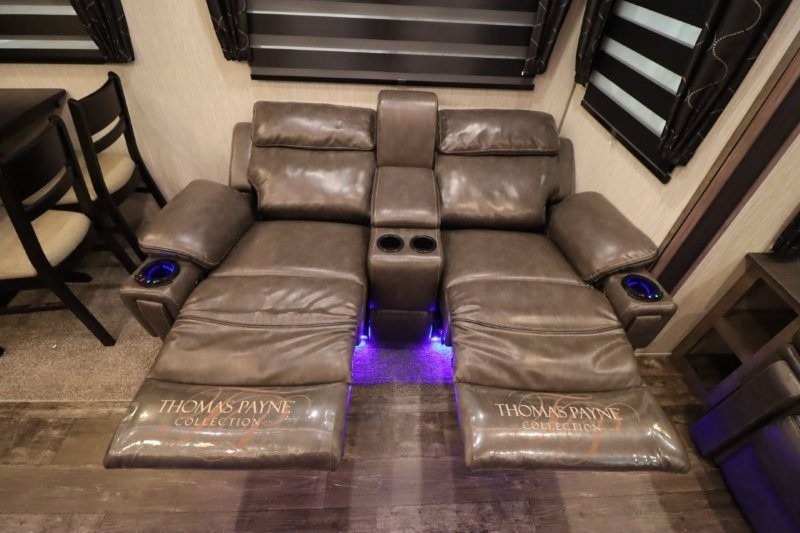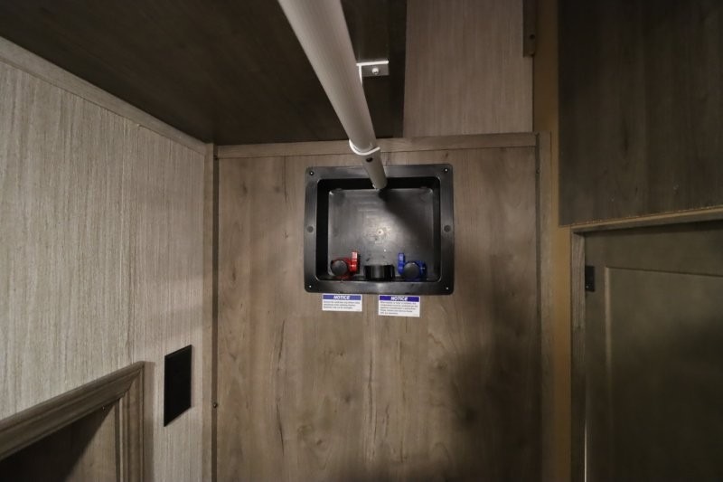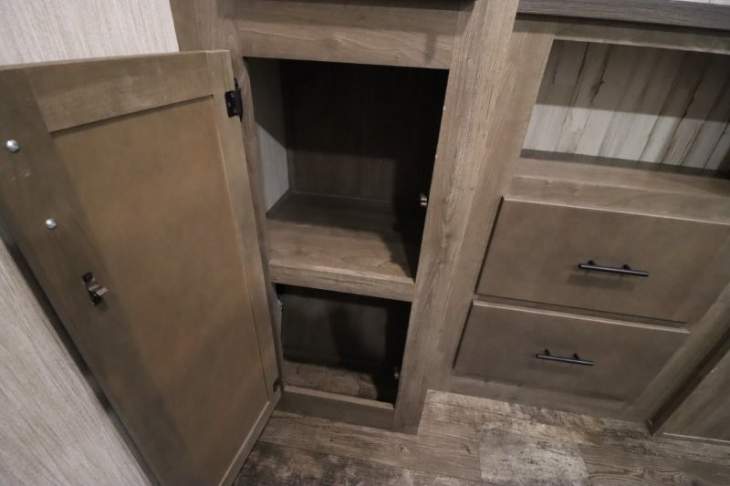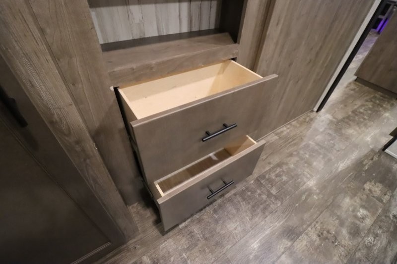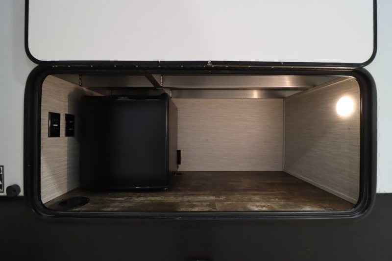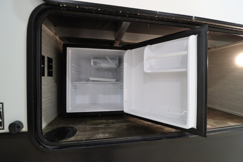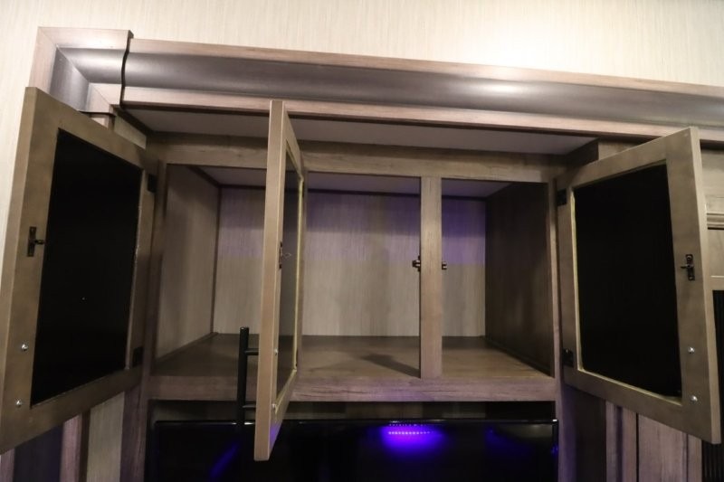 There's something for everyone in this Sabre fifth wheel! From the front private bedroom with a queen bed that can be replaced for an optional king bed and a front closet with an area prepped for the optional washer and dryer, to the second bedroom featuring a jackknife sofa, a trundle bed, a bunk bed, and a loft area above it all, this unit is super accommodating. The kitchen island not only provides extra counter and storage space, but is also makes cleaning up even easier with the farm-style sink and deluxe pull-down faucet. After you have spent a fun day in the sun, head to the rear living area and relax on either the tri-fold sofa which can be transformed into an extra sleeping space or on the home theatre seating with heat and massage. As you sit back and relax, you'll find a fireplace directly across with a large residential TV above it for you to watch your favorite movie!