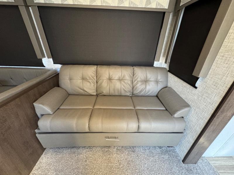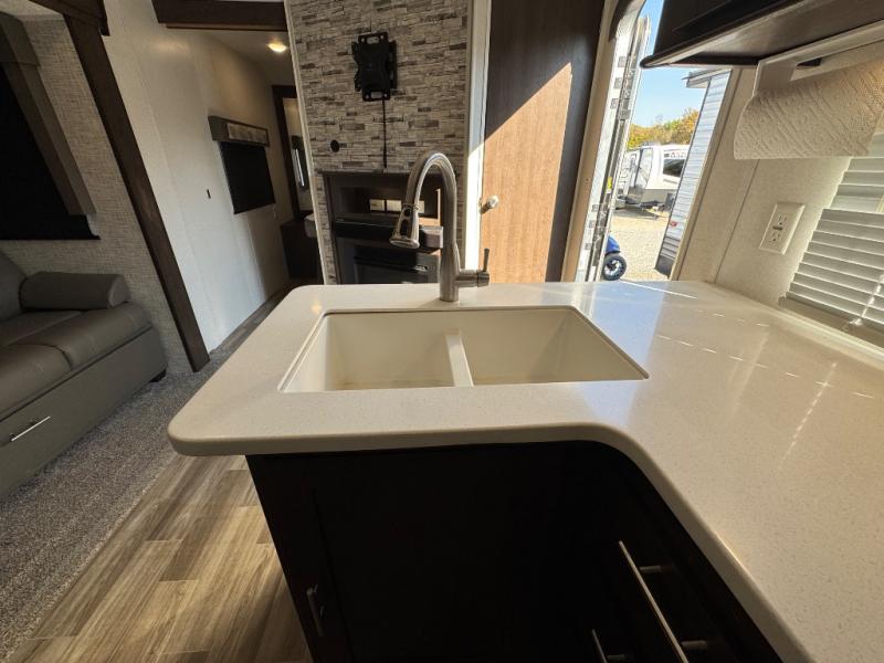 As you get away for the weekend to enjoy nature's beauty, you'll be so glad that you chose to bring this Salem travel trailer along! The full kitchen with its residential undermount sink, three-burner high-output range with oven, and walk-in pantry will allow you to prep meals whenever it is convenient for you, and the large slide that contains the extremely functional Versa Lounge will deliver extra space to the interior so that you don't feel cramped. Your kids will be able to invite a friend or two because of the double-size bunks that are in the back, and since these bunks are right next to the full bathroom with walk-in shower, your kids won't have to search far in the middle of the night.