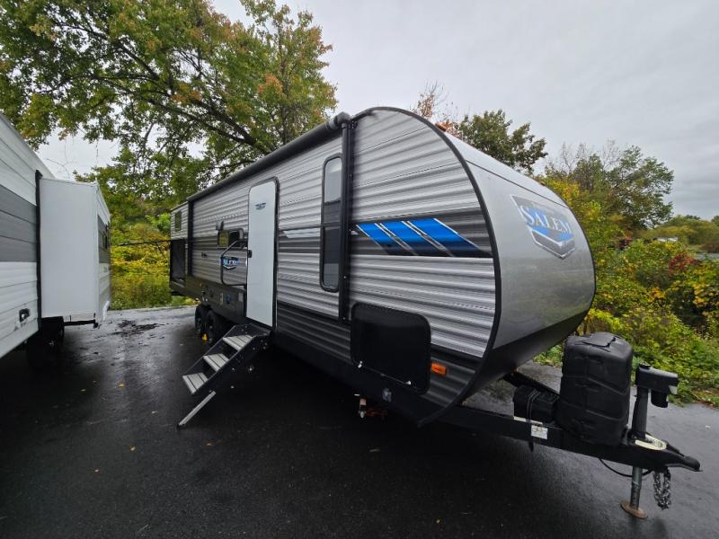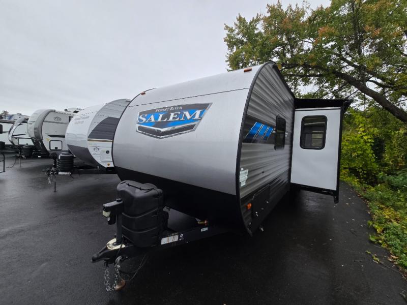 The Forest River Salem travel trailers come in a variety of layouts and designs because families come in a variety of shapes and sizes! Each floor plan has been customized with the very best features so that you and your family always feel cared for when you travel! You will find panoramic windows with cross ventilation so that your surroundings can welcome you even while you remain indoors, and the in-floor ducted heat will keep you comfortable, just like at home. The strut-lifted storage under the bed will allow you to keep extra items stored away so that they are ready when you need them, and a Bluetooth FM stereo with soundbar will create the perfect party atmosphere while you're camping.