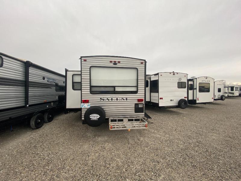 The Forest River Salem travel trailers come in a variety of layouts and designs because families come in a variety of shapes and sizes! Each floor plan has been customized with the very best features so that you and your family always feel cared for when you travel! You will find panoramic windows with cross ventilation so that your surroundings can welcome you even while you remain indoors, and the in-floor ducted heat will keep you comfortable, just like at home. The strut-lifted storage under the bed will allow you to keep extra items stored away so that they are ready when you need them, and a Bluetooth FM stereo with soundbar will create the perfect party atmosphere while you're camping.