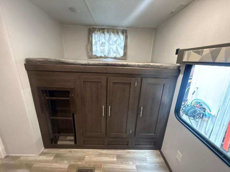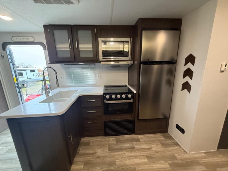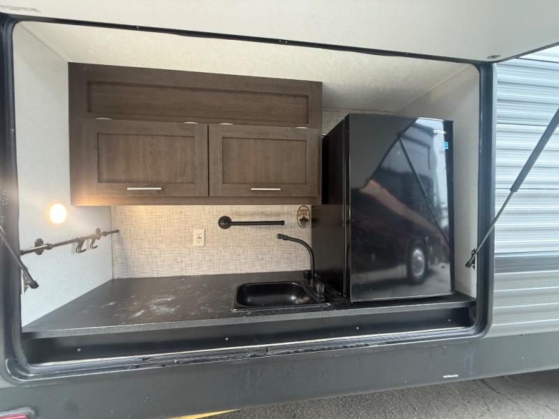 Do you need a break from the mundane camping life? If so, it's time to check out this exciting and full-featured Salem travel trailer! This unit provides two separated sleeping spaces, a rear private bunkhouse and a front private bedroom, so that you don't have to compromise the comfort that you are accustomed to enjoying at home. Another feature that is just as helpful as the one in your own home is the kitchen. With an oversized refrigerator, a high-output range with oven, a residential undermount sink, and abundant cabinet storage, you will be able to create delicious meals for the entire family. Plus, if you prefer to have a sunrise breakfast, you can simply take your preparations outside to the outdoor kitchen!