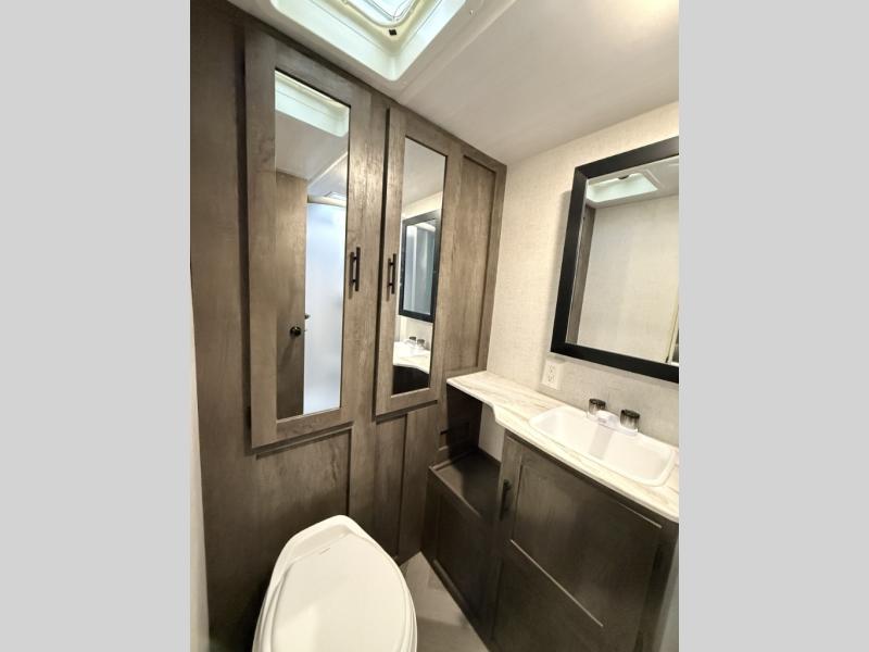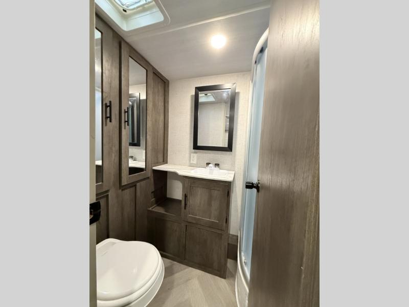 Compact rear bath layout that tows light and camps comfortably.
