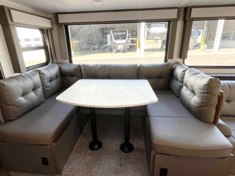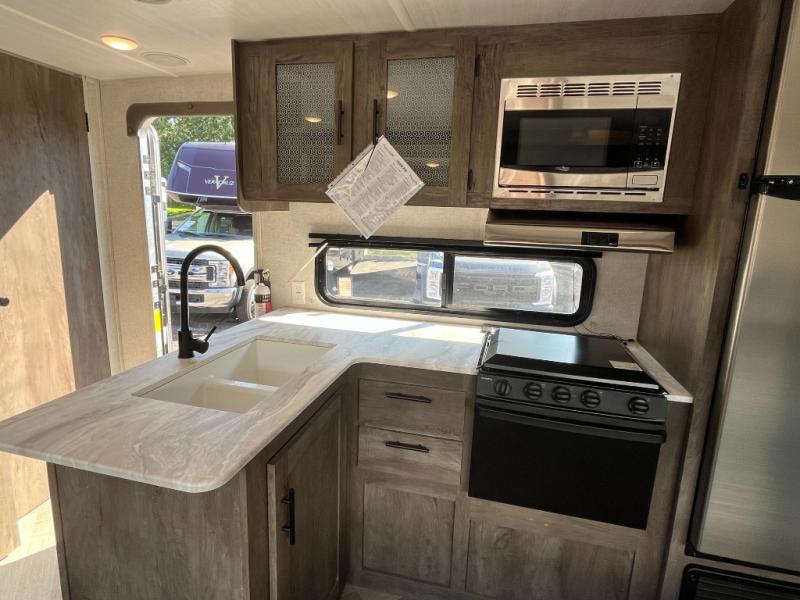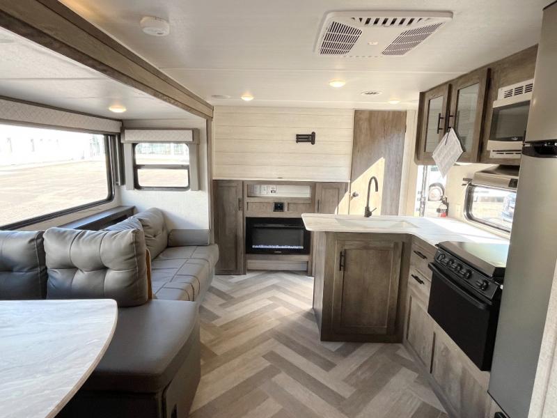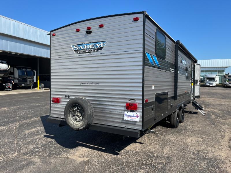 These Midwest Salem Cruise Lite travel trailers by Forest River feature a new modern design with an aerodynamic front profile, making them easier to tow. Inside, you'll find plenty of storage throughout, including Stow and Go storage under the dinette for all your smaller items. Each unit includes new upgraded Shaw linoleum, full extension ball bearing drawer guides, a three burner cooktop, and USB ports in the bedrooms and bunk rooms. Outside, keep the party going with two exterior speakers with blue LED lights, plus there is a power awning with LED lights so you can sit out late and enjoy the stars!