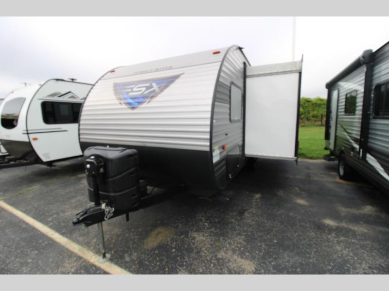 Each single axle Salem FSX travel trailer by Forest River provides an upgraded TUFFCOAT aluminum exterior, fully insulated sidewalls and roof, a patio deck with a railing system on the ramp door, and has been prepped for a backup camera. Inside, the linoleum flooring provides an easy to clean floor, the largest-in-class opening windows let in plenty of sunlight, and the high rise kitchen faucet makes cleaning up a breeze. Choose your favorite model today to enjoy modern living space and conveniences throughout!
