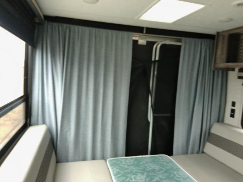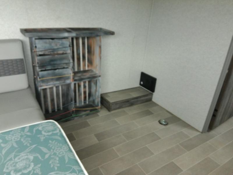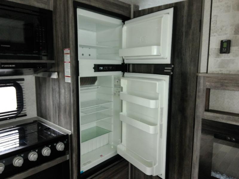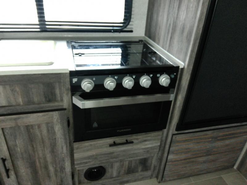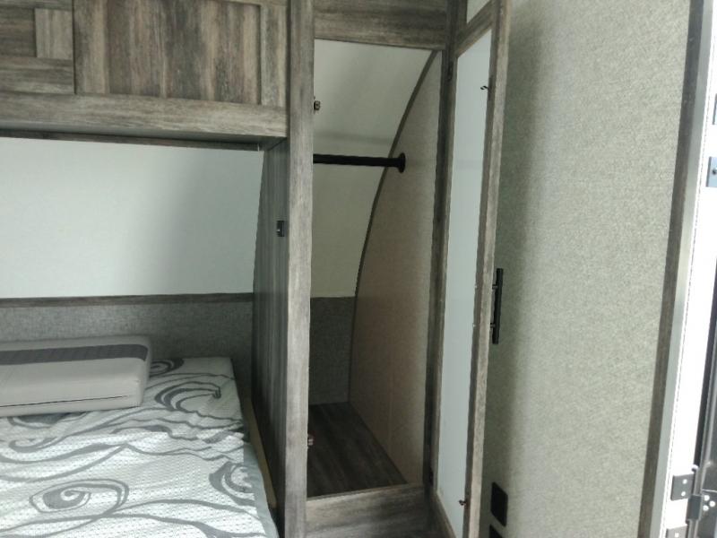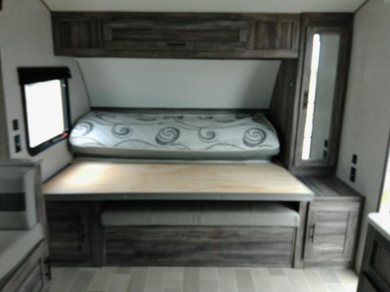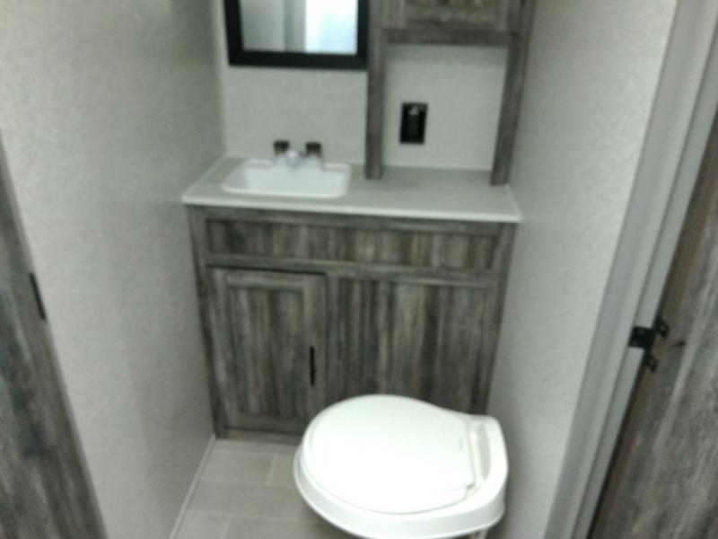Looking for the ultimate toy hauler with a private cargo area for your toys, plus space for your kids to enjoy their own area at night with two flip-down sofas, a removable table, and a fold-down king bed. They even get to enjoy the views from the panoramic window, and easy access through the second entry/exit door. The walk-through bathroom is convenient having access from the main area and the cargo space. You can cook up your favorite meals with the upgraded appliance package and dine at the U-shaped slide out while enjoying the fireplace and entertainment center. The jiffy sofa allows you to relax inside, and the Murphy bed gives you a comfortable queen mattress to fall asleep on. You will also find USB charging outlets, 56 cu. ft. of pass-through storage along the exterior, and another panoramic window in the slide out. You may like to choose the Platinum package option offering a fiberglass version of this model.