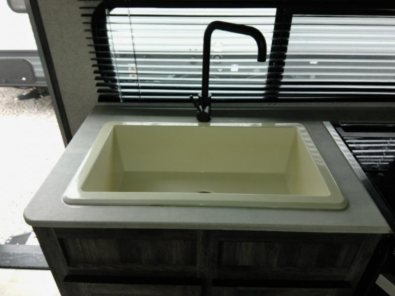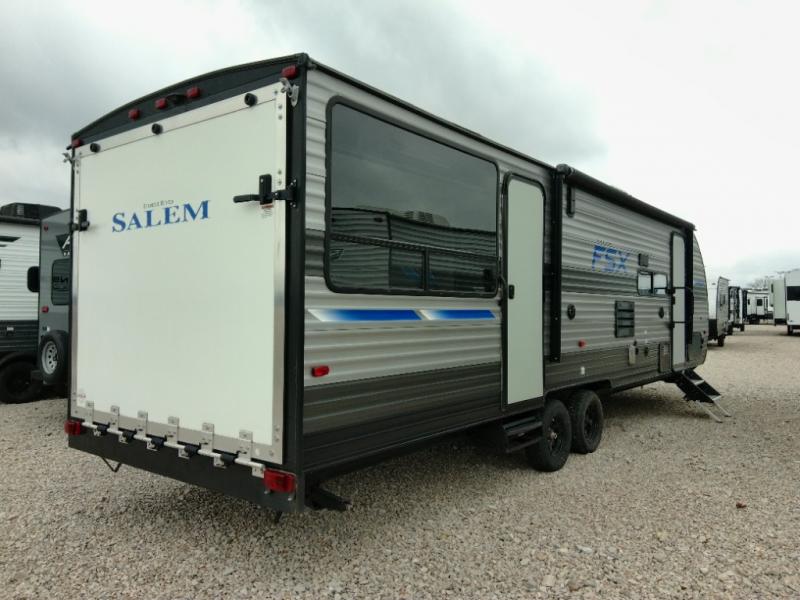 Each tandem axle Salem FSX toy hauler travel trailer by Forest River provides an upgraded TUFFCOAT aluminum exterior, fully insulated sidewalls and roof, a patio deck with a railing system on the ramp door, and has been prepped for a backup camera. Inside, the linoleum flooring provides an easy to clean floor, the largest-in-class opening windows let in plenty of sunlight, and the high rise kitchen faucet makes cleaning up a breeze. Choose your favorite model today to enjoy modern living space and conveniences throughout!