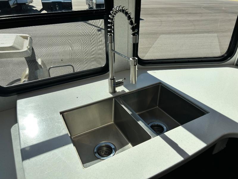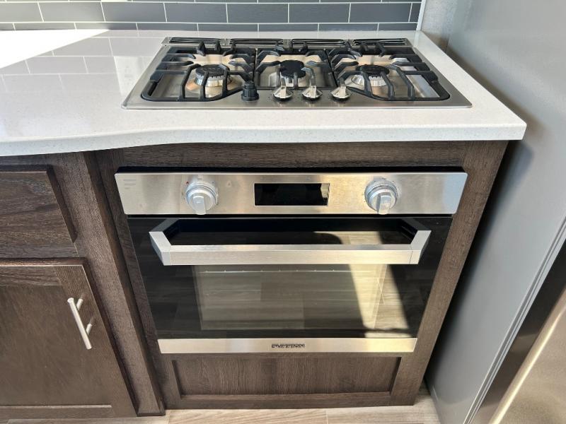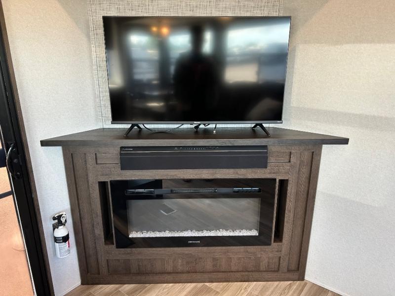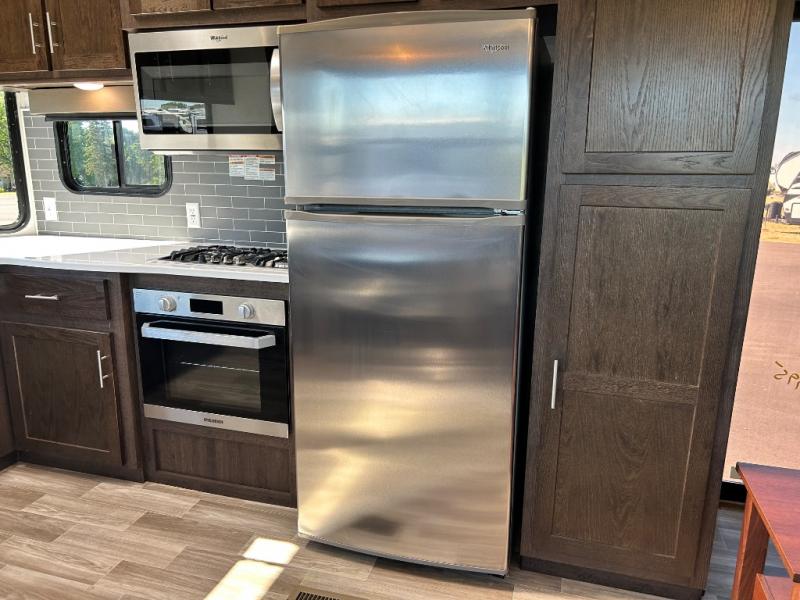 The chef will love having a front kitchen with lots of windows, and the large slide out offers even more windows in the main living and kitchen area providing natural lighting and great views of your favorite place! The stainless steel appliances offer style just like the flooring, and the comfortable furniture allows you to escape from your worries. You can dine, work and play games from the free standing dinette while others relax on the sofa or in the recliner. The fireplace and two ceiling fans offer additional ways to stay cool and warm when you don't want to run the air conditioner or furnace. And don't worry about a restful night's sleep when you have your own king-size bed slide out. There is so much more to enjoy, take a look!