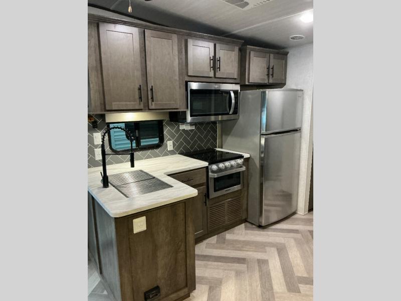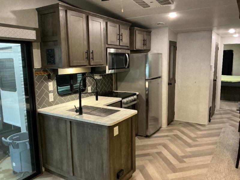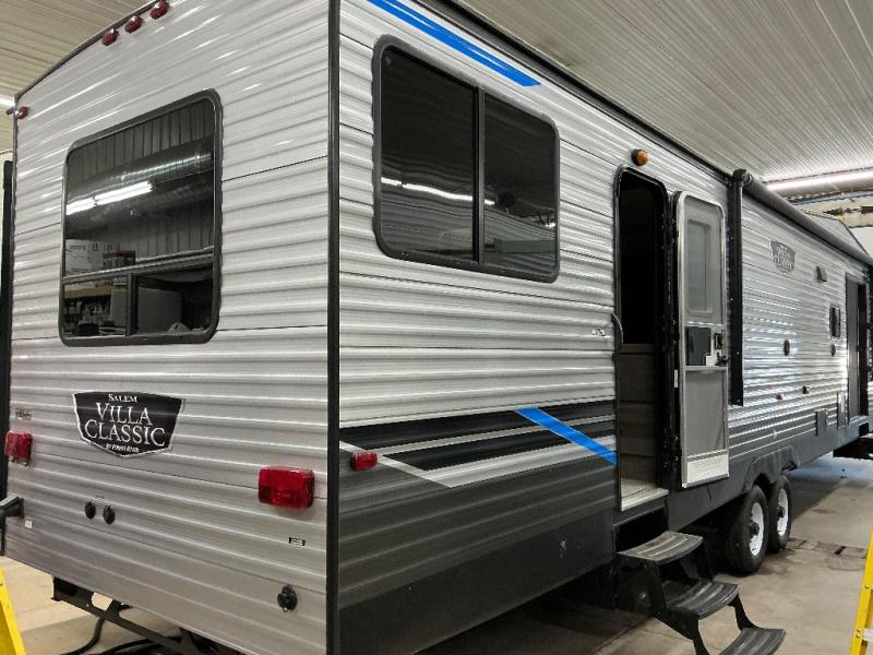 Each Salem Villa Series Classic destination trailer by Forest River is built on a cambered chassis with a seamless one piece roof, fiberglass insulation throughout, aluminum siding, 74" tall slide outs, and 84" interior height for lots of head room. Inside you will love the Herringbone pattern luxury vinyl flooring, the smooth finish ceiling panels, the modern wall board, the rustic wood grain, and many more "must have" features throughout. Choose the model that fits your home away from home dreams, and start living in serenity!