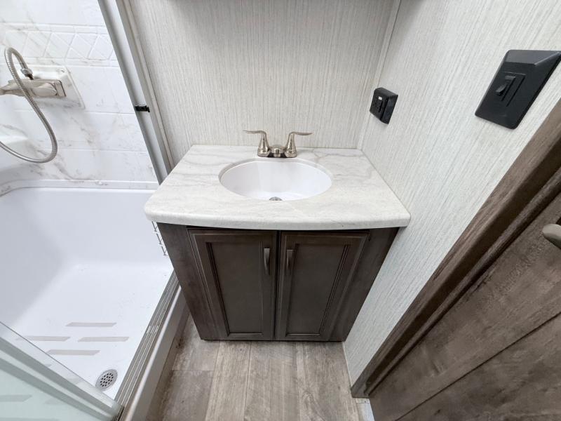 The professional details, outstanding quality, and elegant decor that have been incorporated into each of the Sandpiper fifth wheels by Forest River will absolutely amaze you! Extra large picture windows have been installed throughout the interior so that you can feel connected to the beautiful outdoor scenery from anywhere inside the Sandpiper, and the recessed residential LED lighting will shine brightly and efficiently to illuminate the interior once the day's light has faded. The docking station makes for an easy winterization and the hydraulic front jacks makes it easy to set up once you have arrived at your destination!