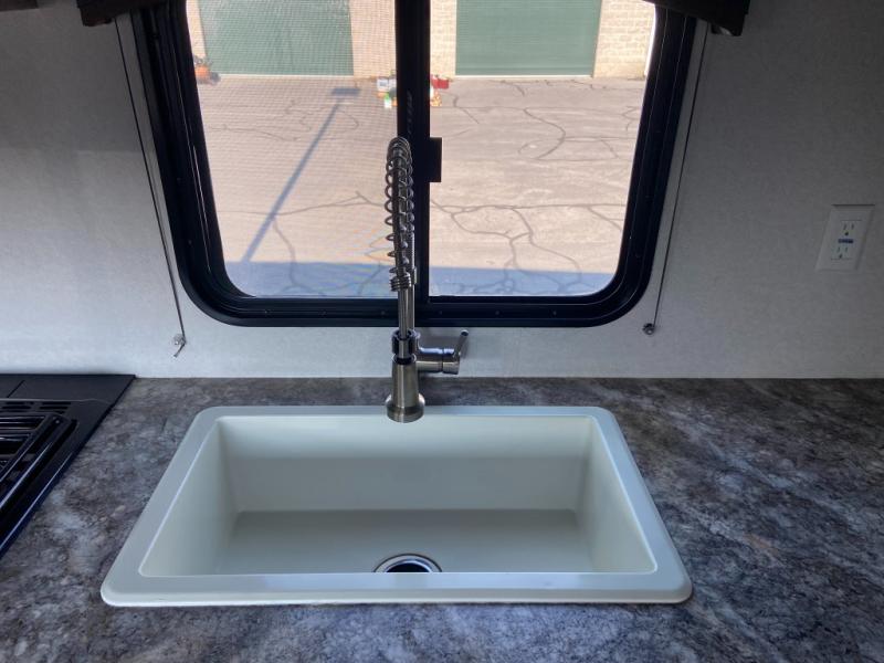 With any Sandstorm Sport Series toy hauler by Forest River you will enjoy the comforts of home with the radius edge thermo foil countertops, the pillowtop mattress, and the Bluetooth stereo with interior and exterior speakers to crank up the tunes. The ducted 13,500 BTU A/C and the ducted 30,000 BTU furnace keeps your unit cool in the summer and warm in the winter, plus each models features heated and enclosed tanks. They are built to last with a 8" I-beam chassis, a one piece seamless PVC roof which you can also walk on, and the four stabilizer jacks. They even have a 102" wide body construction so that you can freely move around the model!