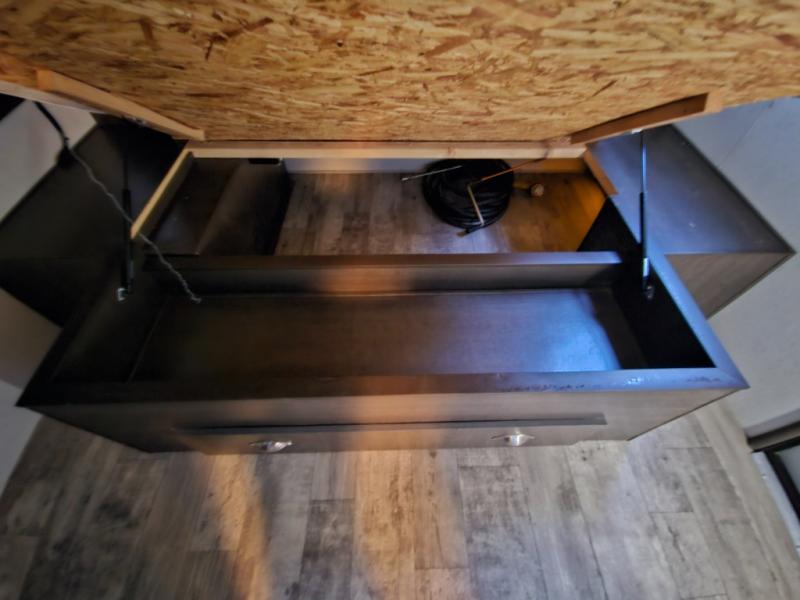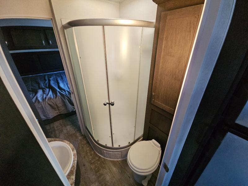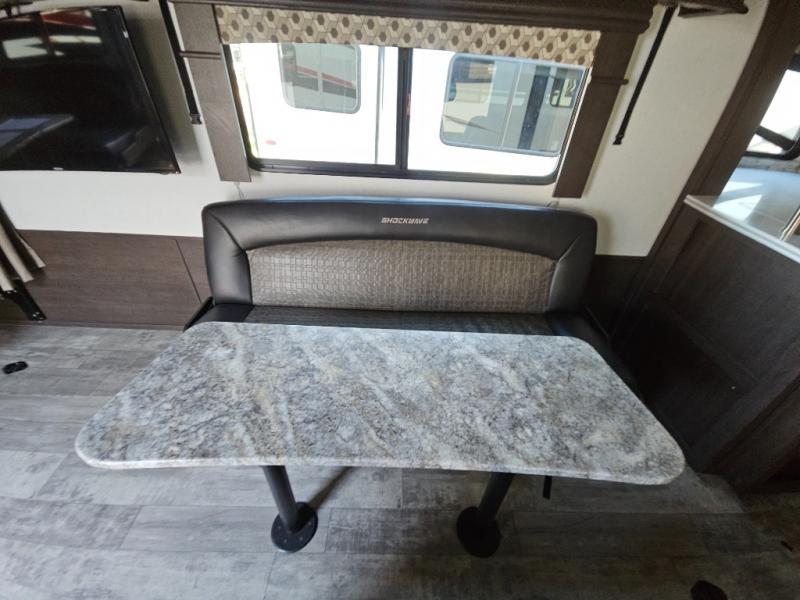 Spacious and comfortable, plus able to carry your off-road toys, this travel trailer is the perfect fit into your active lifestyle! You will quickly notice that you have everything with an electric bed and a flip sofa below, plus living and dining space in the main area once you have removed your toys from the 16' cargo space. You might even think you are being treated like a king when you use the dual entry, one of the two chairs or two flip sofas, as well as the full bathroom and kitchen. And the private bedroom will be your oasis from it all as you lay down on your own king bed. You don't have to rough it when it comes to inside accommodations, that's what you will find each time you hit the trails with this Shockwave!