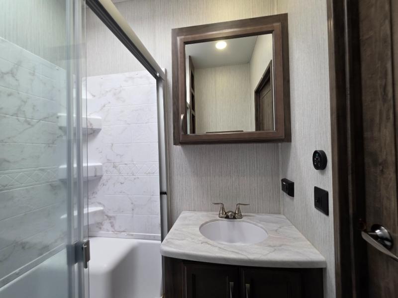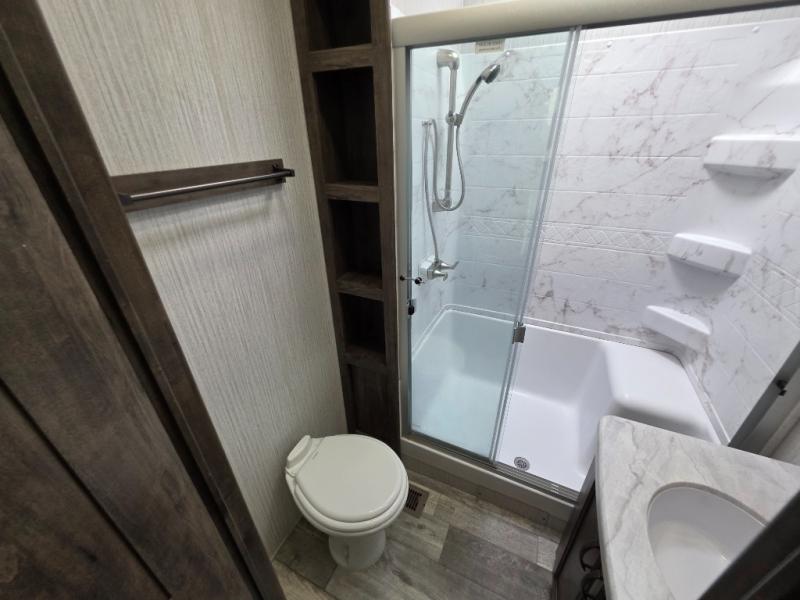 With any Sierra Destination Trailers by Forest River you will feel right at home with many residential features. The Sierra Destination Signature Package includes stainless steel kitchen appliances, including a 22 cu.ft. refrigerator, wood plank pattern linoleum, plus a ceiling fan in the living room as well as a 15K BTU A/C to keep you cool throughout the summer. You'll enjoy recessed residential LED lighting to keep every room light and open, and the extra large picture windows throughout will allow the fresh mountain air in. These models also include all the appliances and systems to make your destination that much easier, including a full coach water filtration system, a 10 gal. DSI water heater, an interior thermostat for heating and cooling, plus washer/dryer hookups on select models! The Sierra Destination Trailers are the one for you, now you just need to choose your destination!