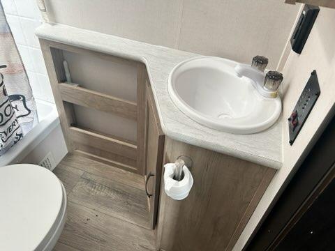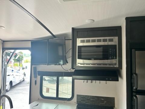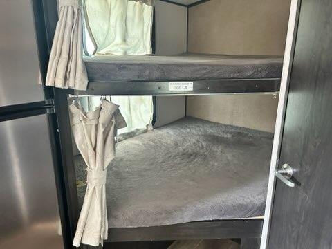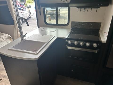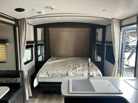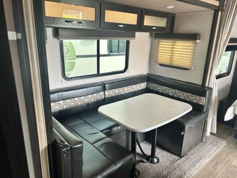 Pack up the kids and grab the dog for an unforgettable camping weekend with family. This unit can comfortably sleep eight people, so invite the grandparents and the cousins! The U-shaped dinette within the flush floor slide is the perfect spot for the kids to enjoy their breakfast at, and getting ready for the day is a breeze with a full bath included in this travel trailer. The oversized double bunk beds are a great addition for the little ones and the Murphy bed at the front of the unit is both comfortable and functional because it can convert into a sofa for extra seating during the day. This model also features an outside kitchen that is perfect for cooking the catch of the day on!