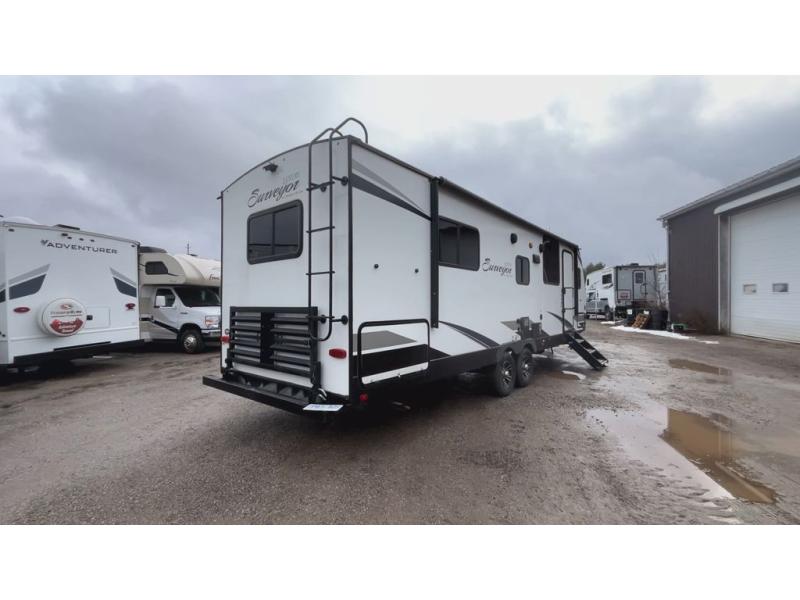 For any camping trip you will want a Forest River Surveyor travel trailer. These models are lightweight and easy to tow, plus you will find that inside there is superior craftsmanship throughout. Along the interior there is a barreled ceiling which adds more headroom in each model and stainless steel appliances for an added at home feature. The designer Carefree flooring is stylish and easy to clean, plus there is a Furrion Bluetooth stereo for you to crank up the tunes. Along the exterior you will enjoy convenient features like the outside shower, the electric awning with LED lights, and the pet friendly utility hook with food bowls too. It is now easier than ever to choose a travel trailer that is ideal for you! What are you waiting for? Come select your Surveyor travel trailer today!