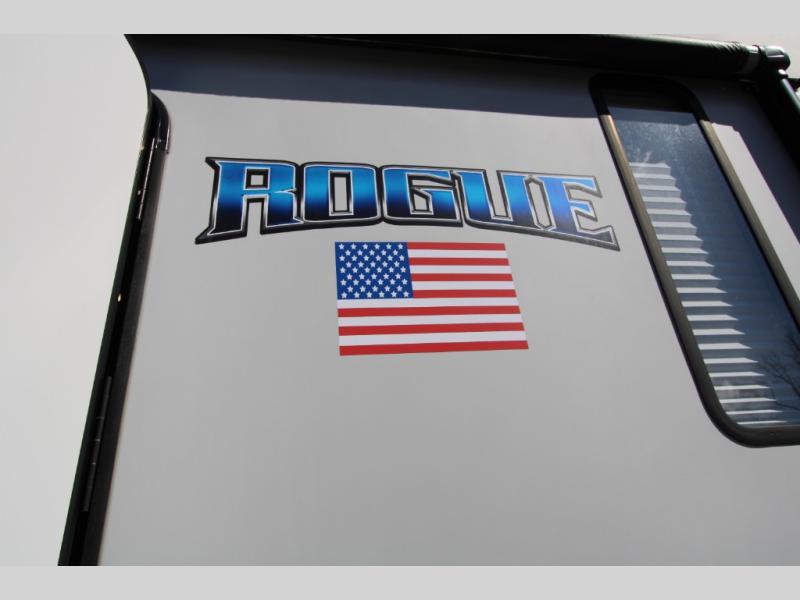 For any outdoor adventure, you will want a Vengeance Rogue toy hauler by Forest River! Each model features a ramp door patio system providing you an above-ground outdoor living space and a screen wall/tent wall to separate the inside from the outside without giving up any fresh air. With the enclosed underbelly, you can now camp in all types of weather, and after a day of playing outdoors, you will enjoy washing off the dirt at the outside shower. Inside, you will appreciate the multiple USB charging stations and the One Control system for lights, slides, monitor panel, and awning. Go Rogue today!