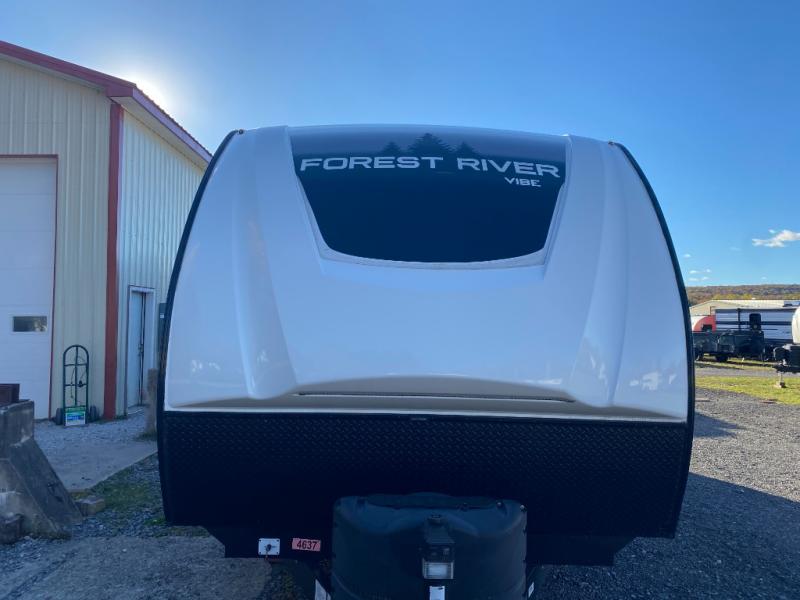 With each Forest River Vibe travel trailer in the Midwest Region, you will experience a feature-packed trailer including Hyper Lyte construction, vacuum-bonded walls, and aluminum framed laminated floors including an enclosed underbelly, a 3/4 front fiberglass cap with LED light, and a spread axle system. On the inside, you will find a stainless steel chef's appliance package, solid surface countertops, a Denver pillow top mattress, a high efficiency A/C cooling system with larger duct work, and much more! Choose a Vibe today, and start having fun tomorrow!