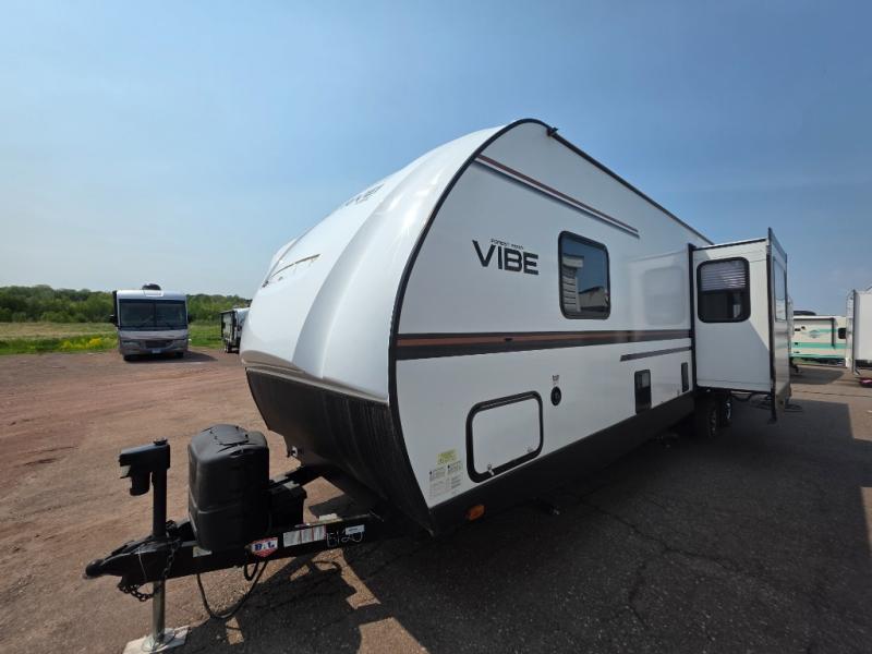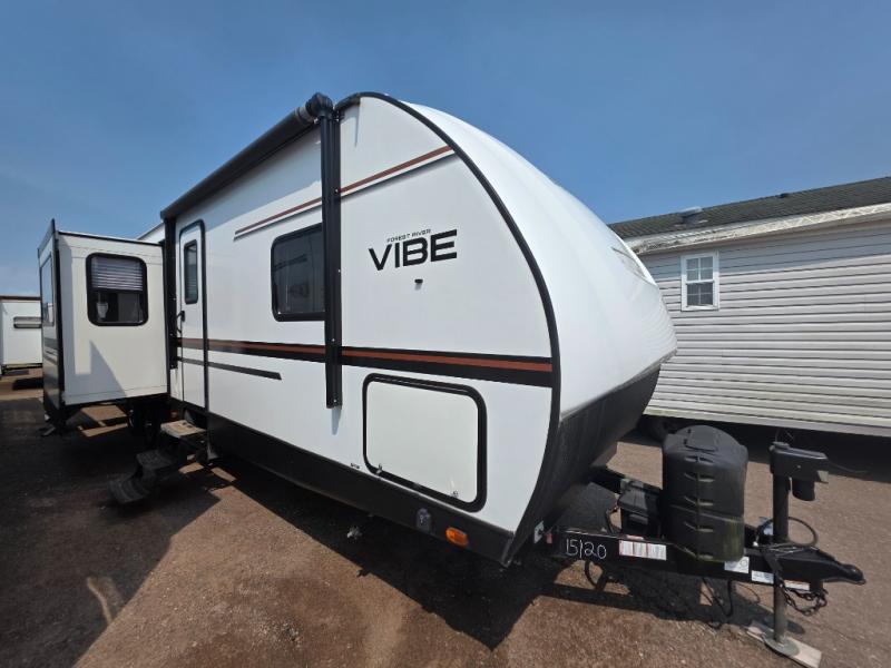 With each Forest River Vibe travel trailer in the Midwest Region, you will experience a feature-packed trailer including Hyper Lyte construction, vacuum-bonded walls, and aluminum framed laminated floors including an enclosed underbelly, a 3/4 front fiberglass cap with LED light, and a spread axle system. On the inside, you will find a stainless steel chef's appliance package, solid surface countertops, a Denver pillow top mattress, a high efficiency A/C cooling system with larger duct work, and much more! Choose a Vibe today, and start having fun tomorrow!