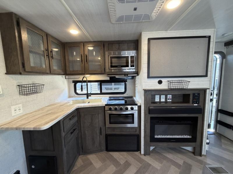 With each Midwest region Wildwood travel trailer by Forest River you will enjoy many interior comforts, like the Herringbone pattern luxury vinyl flooring, the Evergreen mattress, the tub surround, plus much more. There is a fully walkable one piece roof that will make cleaning off the top of your unit a snap, each model is also constructed with a powder coated I-beam frame and a tough coat paint exterior. The power awning with adjustable legs will provide an outdoor living space, and the exterior speakers with a blue LED light will keep the party going!