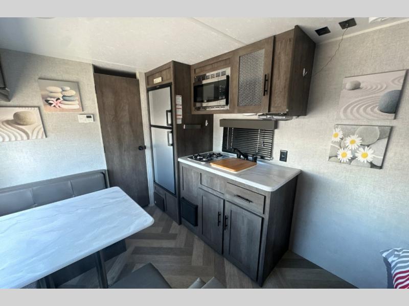 In any Wildwood FSX trailer by Forest River, you can count on having fun while you enjoy any outdoor adventure away from home. These full-featured lightweight units are easy to tow and offer a modern residential living space. The Wildwood FSX comes with large operable windows to bring in a spectacular view of the beautiful landscape that surrounds you, and it also comes with a full interior stand-up height. You will also find an automatic ignition furnace for added comfort in colder climates, and the modern grey Beauflor flooring with a matte finish will add an attractive quality to these trailers. So, for a value-packed unit that is lightweight and rich in features, choose the Wildwood FSX trailer and head out for a weekend of outdoor fun!