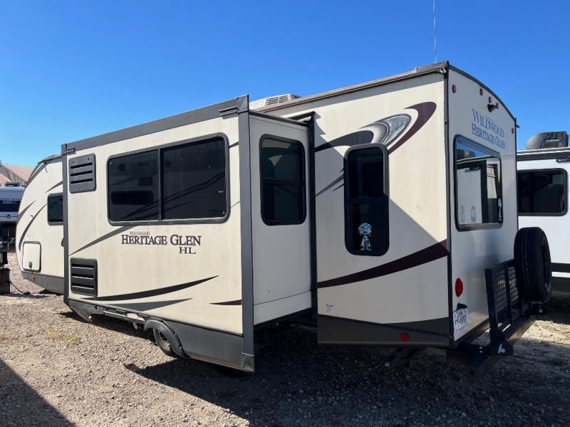 With each Wildwood Heritage Glen Hyper-Lyte travel trailer by Forest River you will appreciate the wide stance axle system for stability, the power tongue jack with LED docking light to easily set up during the day or night, and Solid-Step entry steps plus the XL Lend-a-Hand entry grab handle to the main entrance. The XL Max-Tint panoramic window(s) in the main slide bring the outside inside, plus the yacht trim ceiling finishes, the Herringbone Designer's Choice Shaw flooring and the Hudson Wood agreeable grain cabinetry offer a stylish and beautiful interior to enjoy for years. Take a Hyper-Lyte home today!