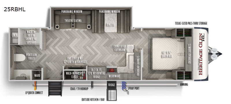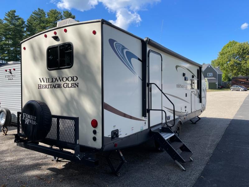 With each Wildwood Heritage Glen Hyper-Lyte travel trailer by Forest River you will appreciate the wide stance axle system for stability, the power tongue jack with LED docking light to easily set up during the day or night, and Solid-Step entry steps plus the XL Lend-a-Hand entry grab handle to the main entrance. The XL Max-Tint panoramic window(s) in the main slide bring the outside inside, plus the yacht trim ceiling finishes, the Herringbone Designer's Choice Shaw flooring and the Hudson Wood agreeable grain cabinetry offer a stylish and beautiful interior to enjoy for years. Take a Hyper-Lyte home today!