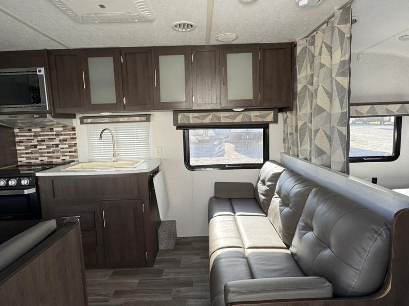 Load up your family of four and head out to your favorite campground with this Wildwood X-Lite 241QBXL travel trailer. There are plenty of conveniences throughout from the front private bedroom when you draw the privacy curtain to the rear bathroom with a radius walk-in shower. You can enjoy visiting and reminiscing about your day in the combined kitchen and living area, at the sofa, and booth dinette. The dinette can also transform into an extra sleeping space when needed. With the 14' power awning you can spend more time outdoors and not get a sunburn!