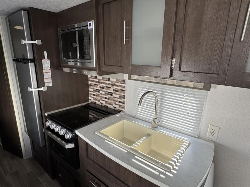 When you are ready for some time away from home, but are looking to enjoy the comforts from home choose a Wildwood X-Lite travel trailer! These models are ideal for any camping excursion and for any family - from the experienced camping couple to the family with multiple kids - there is a trailer for you! Along the exterior you will find an exterior convenience package with friction hinge and baggage door magnets. Inside there is a stainless steel Furrion appliance package and modern cloth roller shades with auto stop in the living and bedroom. With Furrion backup camera prep and the Furrion solar prep, you can make each camping trip even better. Unleash your inner "wild" with a Wildwood X-Lite travel trailer!