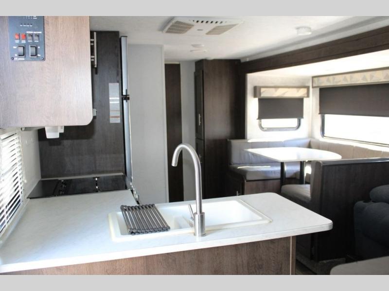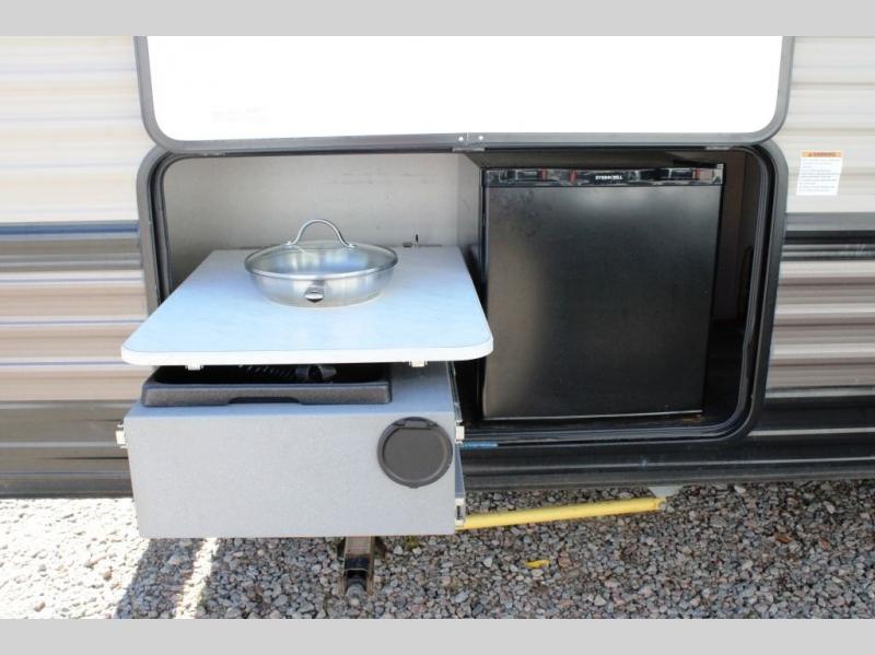 When you are ready for some time away from home, but are looking to enjoy comforts from home, then choose a Wildwood X-Lite toy hauler travel trailer! These models are ideal for any camping excursion and for any family - from the experienced camping couple to the family with multiple kids - there is a trailer for you! Along the exterior you will find a one-piece, full walk-on seamless roof and pass-through storage for all of your camping gear, plus a cold crack and mildew resistant vinyl patio awning. Inside there is a 4.3 cu. ft. electric refrigerator, a radio with CD player, an attractive kitchen backsplash, extra large kitchen overhead cabinets, and mini blinds for added privacy. Unleash your inner "wild" with a Wildwood X-Lite toy hauler travel trailer!