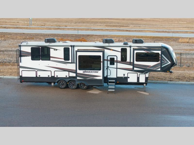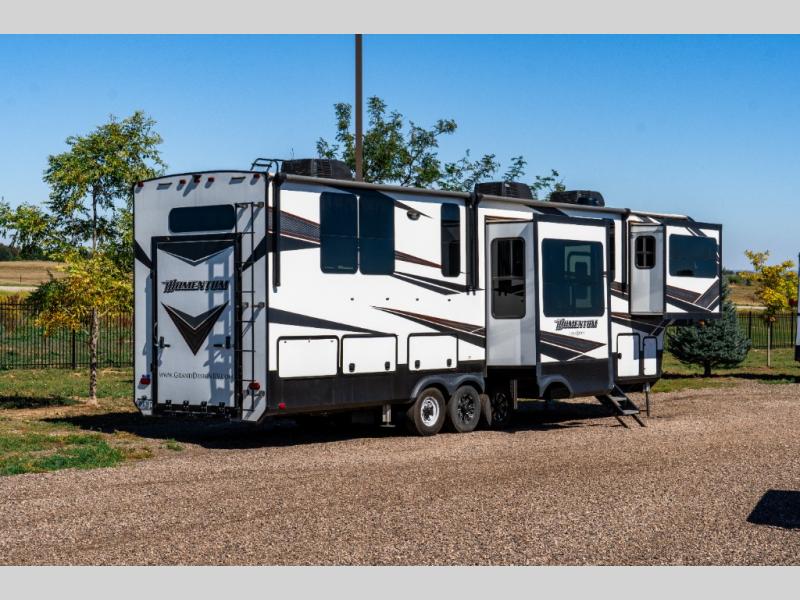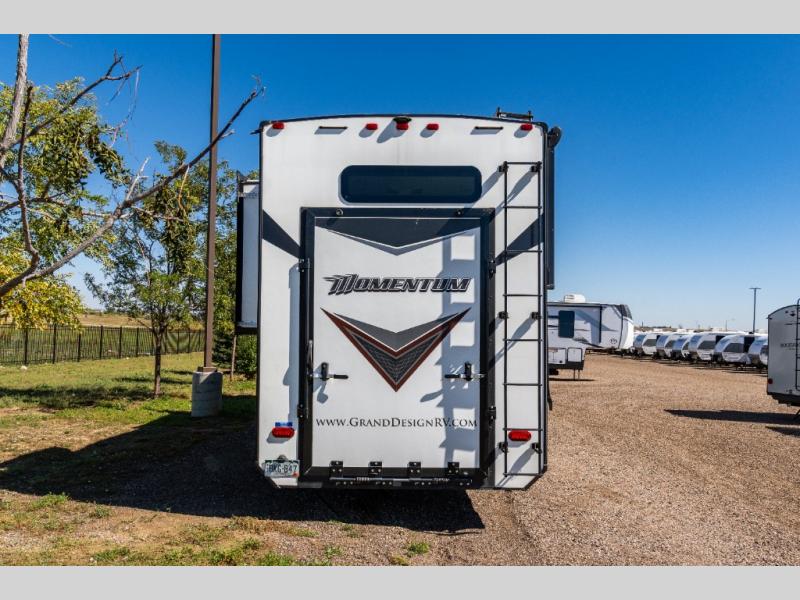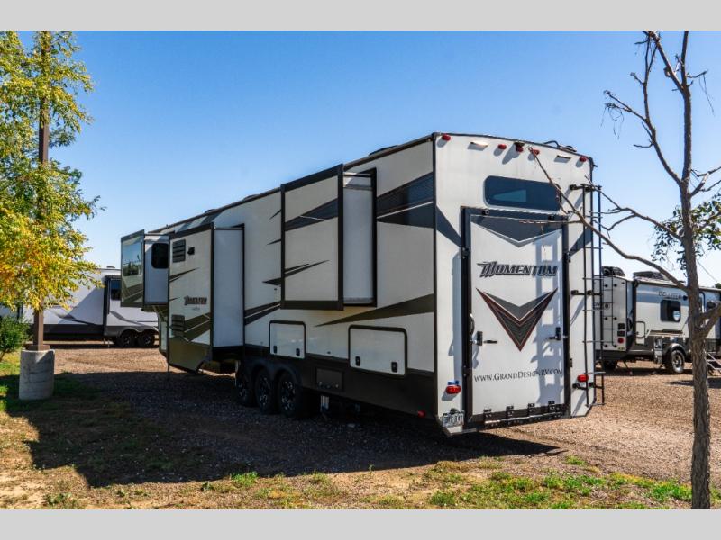 With any Grand Design Momentum toy hauler fifth wheel, you will enjoy extraordinary living and extreme playtime with the Weather-Tek insulation for four seasons of protection and a fully enclosed fuel pump station to keep the fun going the whole time. The Tuff-Ply garage flooring is gas and oil resistant, and it includes 2,500-LB flush-mount tie-downs to keep your toys secure while moving down the road. The interior includes color-changing LED accent lighting, a convection microwave, a central vacuum system with tools and a dust pan, and a OneControl 7" touchscreen control panel with app controls so that you can operate many of your RV's functions from wherever you want. Any Grand Design Momentum allows you to keep your active lifestyle no matter where you decide to stay!