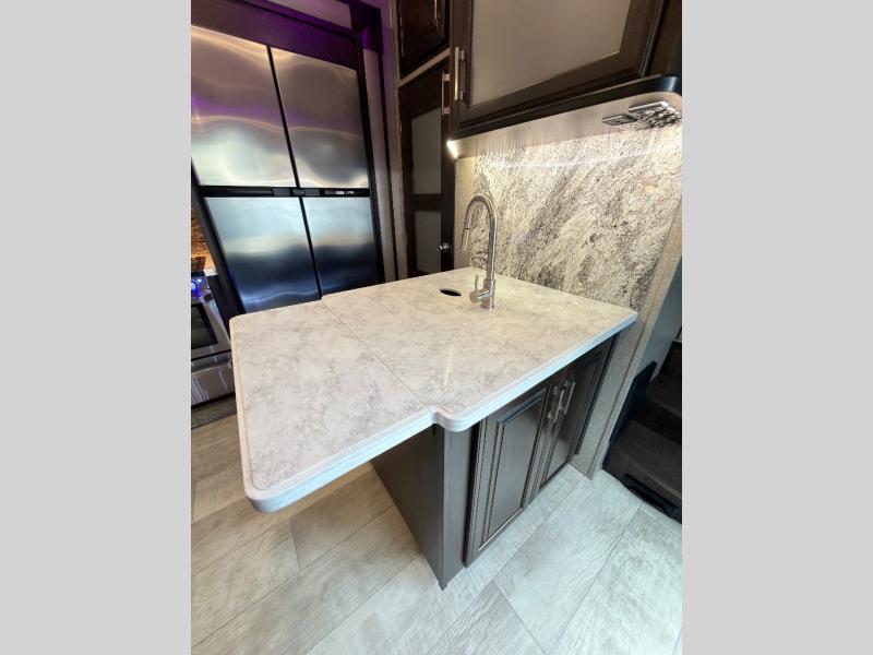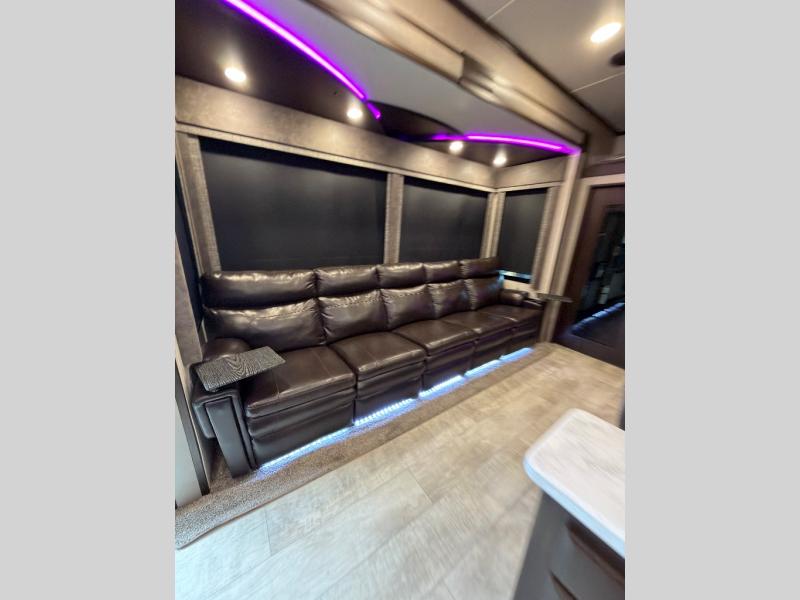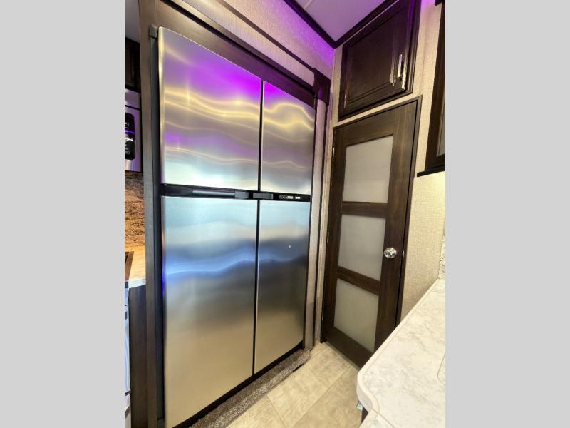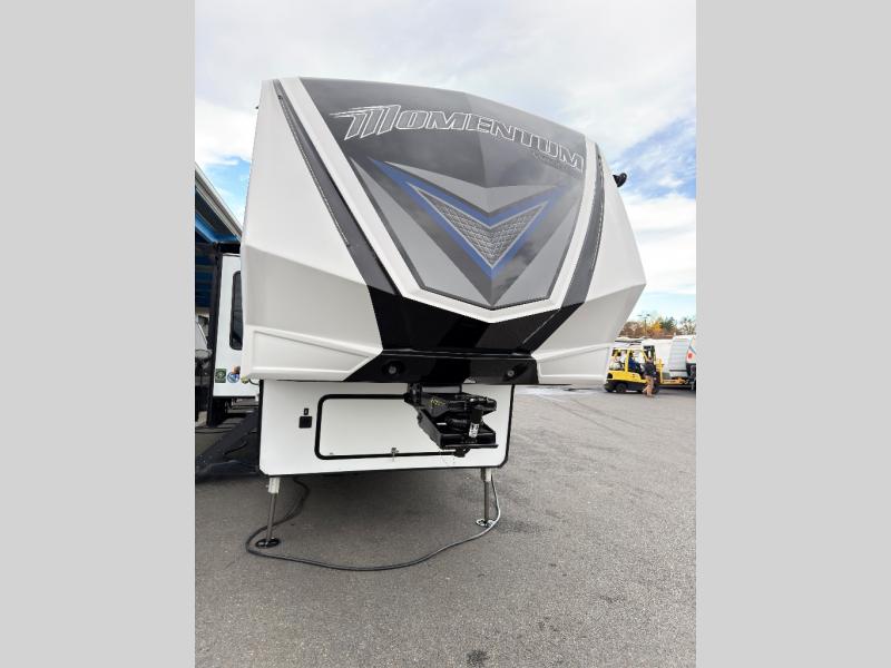With any Momentum M-Class toy hauler fifth wheel you will enjoy extraordinary living with extreme playtime with the Weather-Tek insulation for four seasons of protection, and a fully enclosed fuel pump station to keep the fun going the whole time. The Tuff-Ply garage flooring is gas and oil resistant, plus triple insulated. You will find 2,500 lb. rated flush-mount tie-downs to keep your toys secure while moving down the road. The interior includes a sofa with headrest and removable swivel table, a convection microwave, a central vacuum system with tools and a dust pan, and a satellite/solar roof access channel to mention a few highlights. Any Grand Design Momentum M-Class allows you to keep your active lifestyle no matter where you decide to stay!